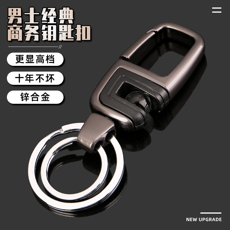 カービジネスハイエンドダブルリングキーチェーンペンダントギフトメンズカーキーホルダーソリッドカラーメタルウエストホルダー卸売