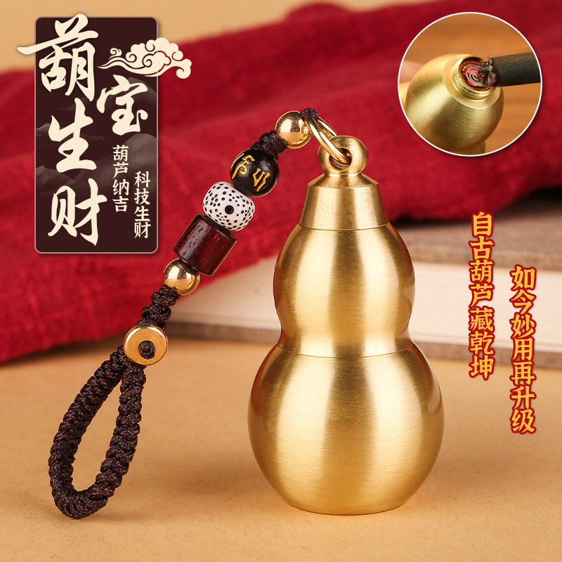 アンティーク真鍮ひょうたん充電式ライター、縁起の良い雲編みロープペンダント付き、ユニークな個性、USBポータブル