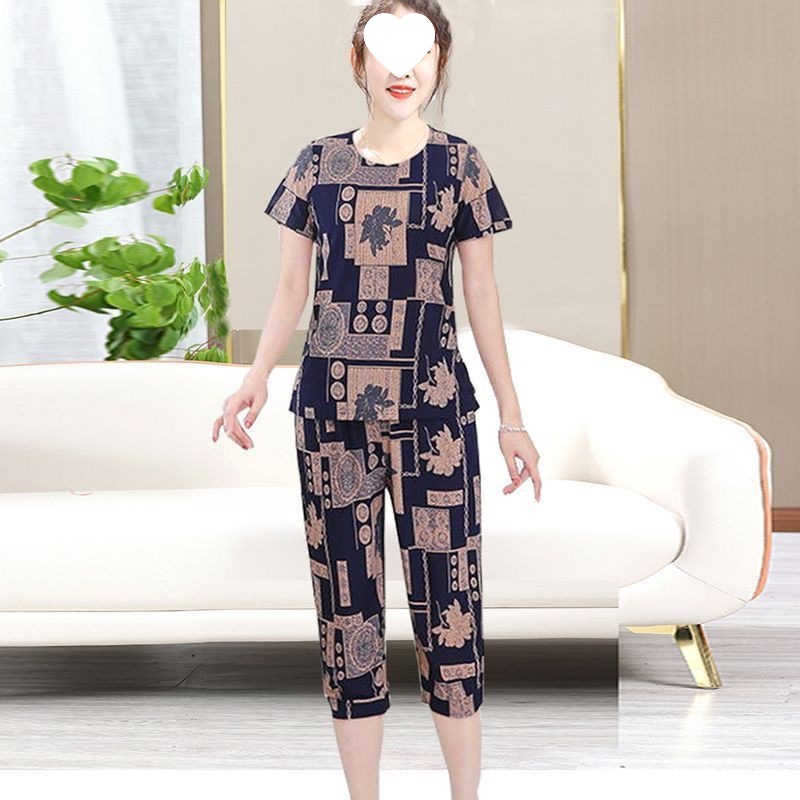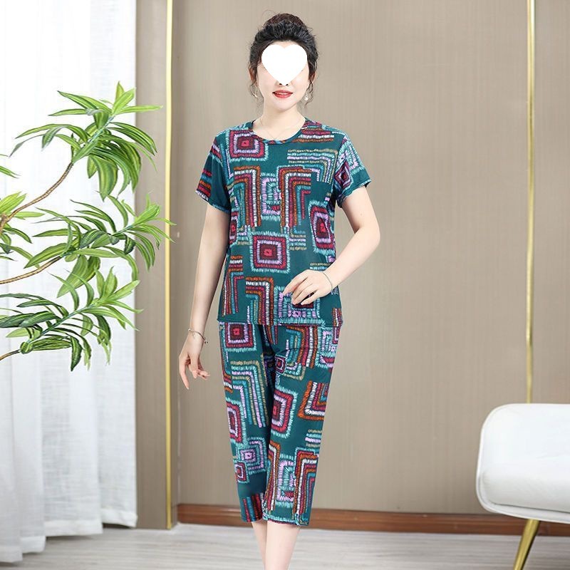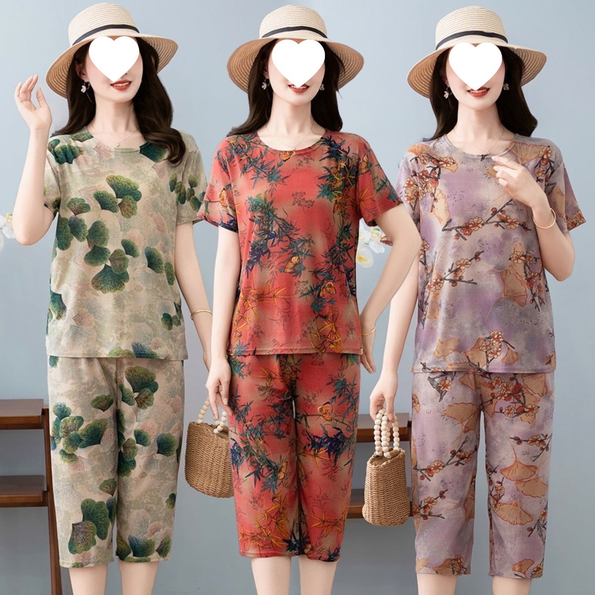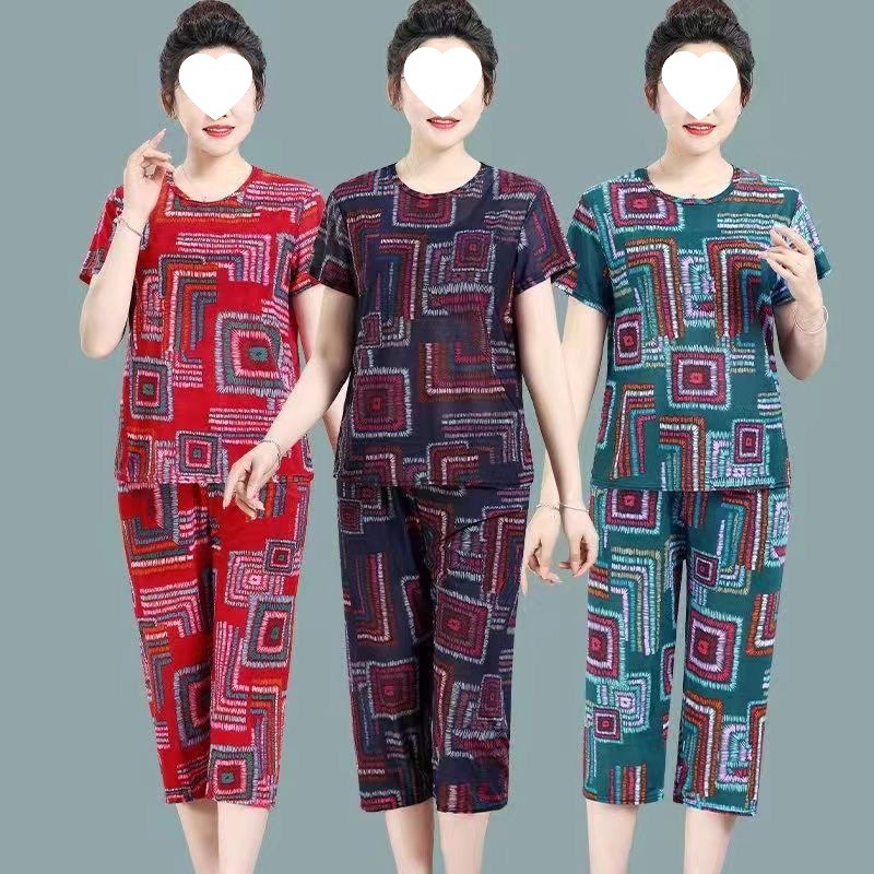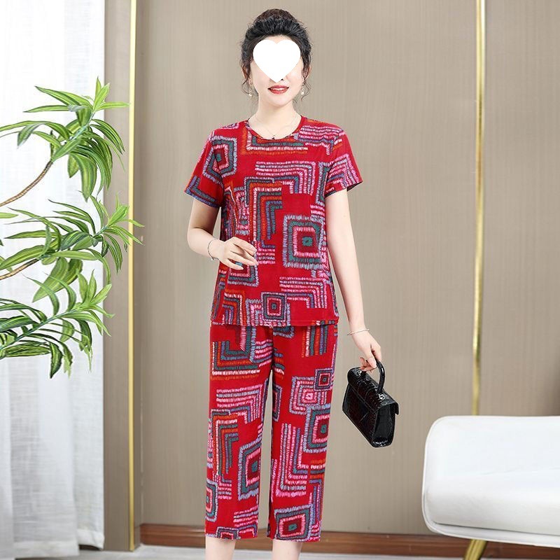 (ママトップ+パンツ) 夏クールアイスシルクママスーツメーカー供給迷路レッド迷路パープル