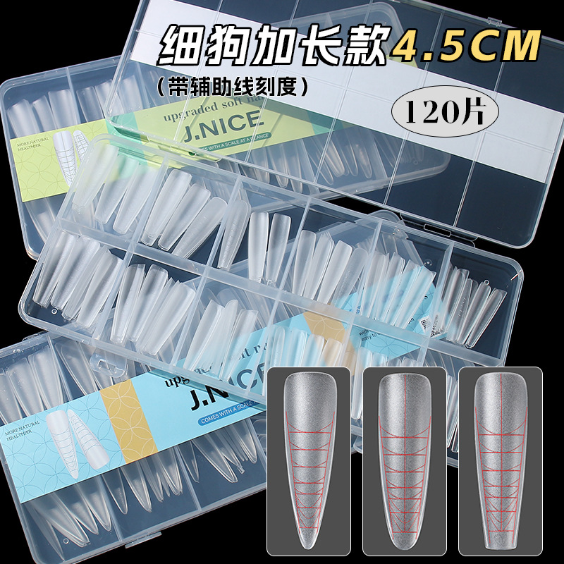超长4.5细狗尖辅助线刻度甲片全半贴无痕磨砂免刻磨延长指甲贴片