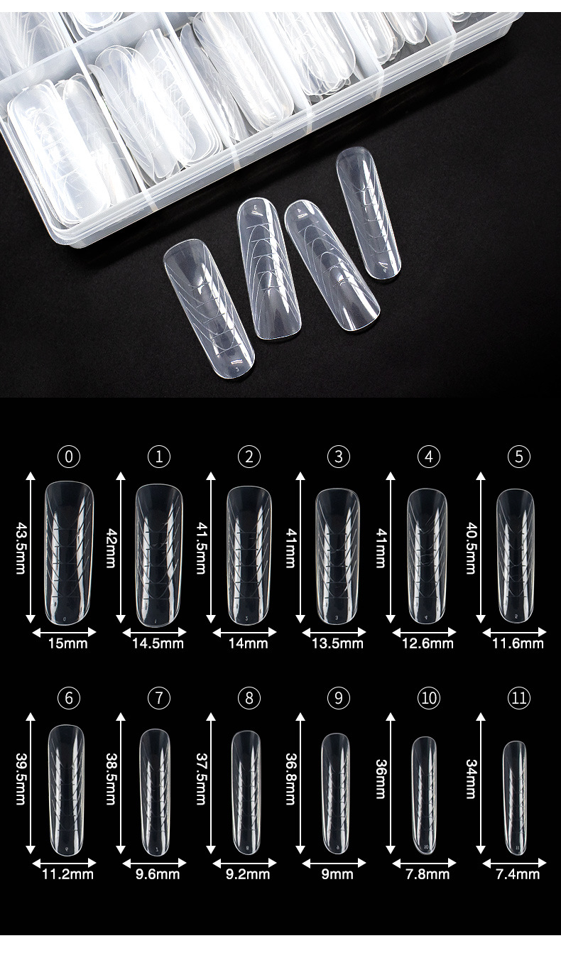 ネイルアートクリスタルエクステンションネイル補助ライン、スケール付き、ペーパーフリーのマネキンネイルモデル、クロスボーダーボックス入りウェアラブルネイルチップ