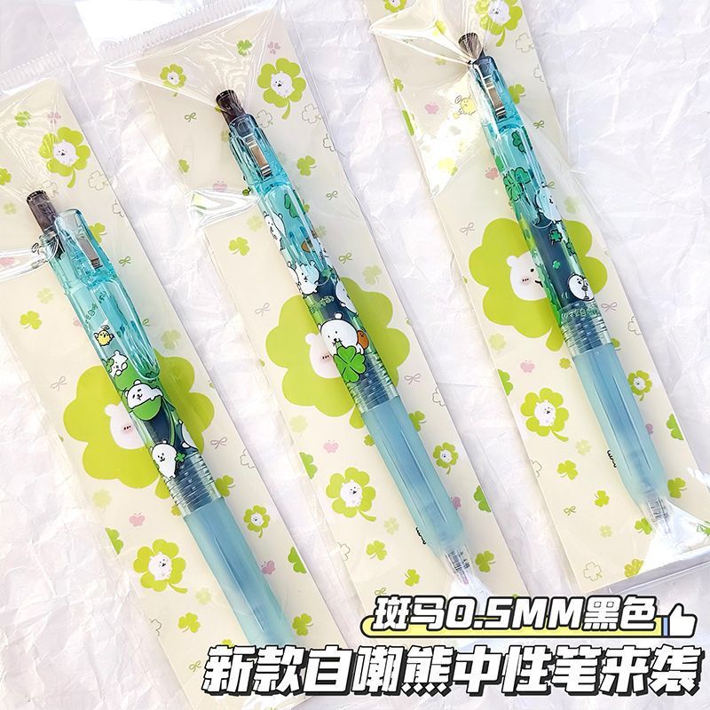 新款日本ZEBRA斑马四叶草自嘲熊限定系列DIY贴纸款按动中性笔黑笔