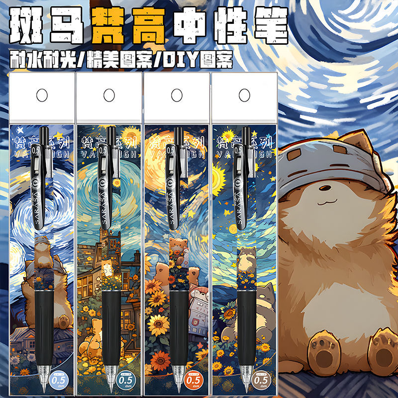 新款斑马日本ZEBRA梵高可爱动物限定DIY款中性笔JJ15按动考试黑笔