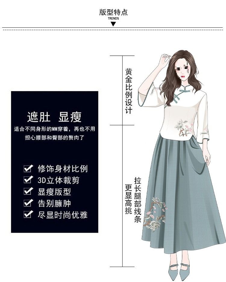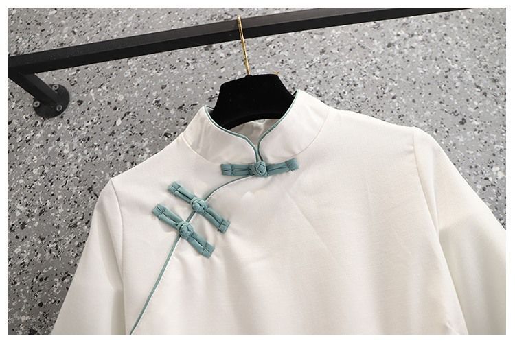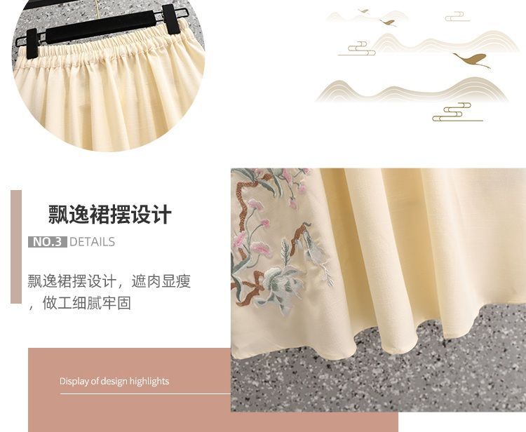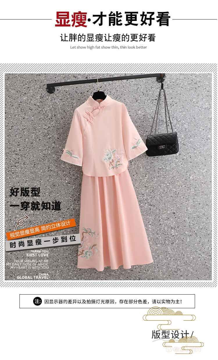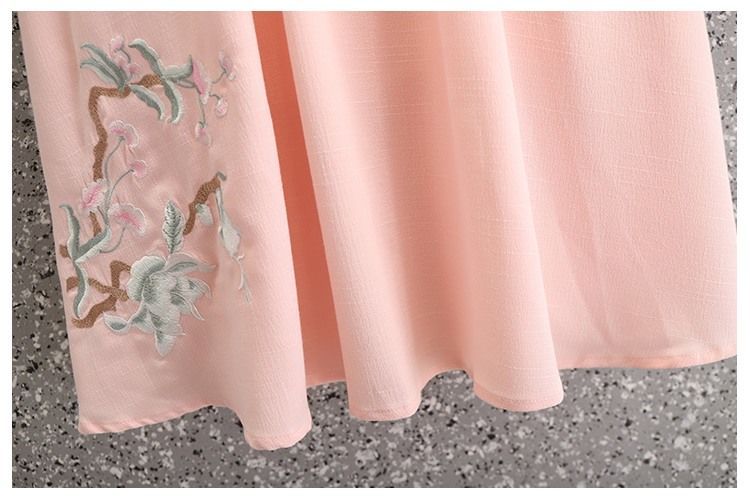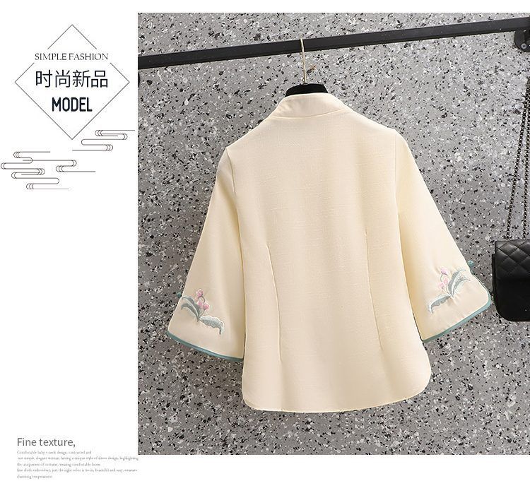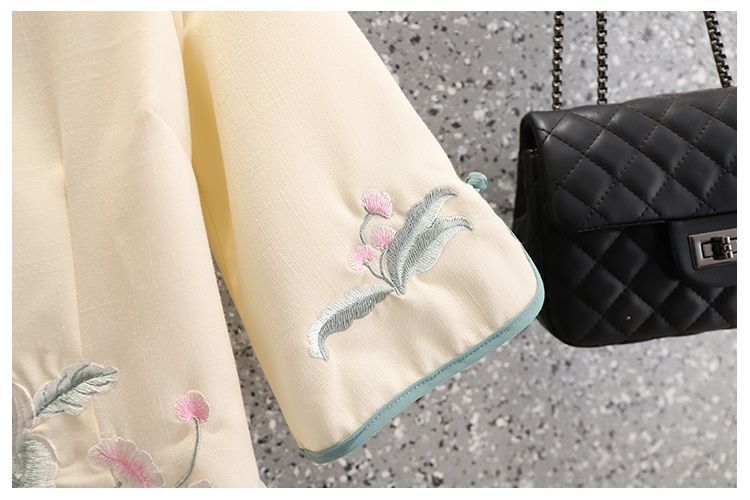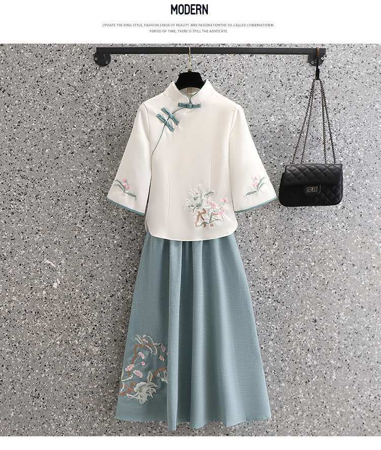 中国風の夏のレトロな小さな刺繍入り漢服ツーピース大人のチャイナドレススリム七分袖新しい中国風のスカート