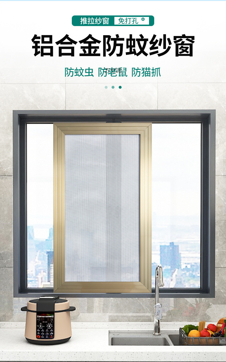 推拉式纱窗防蚊家用铝合金纱窗平移自装金刚网塑钢阳台防盗沙窗网
