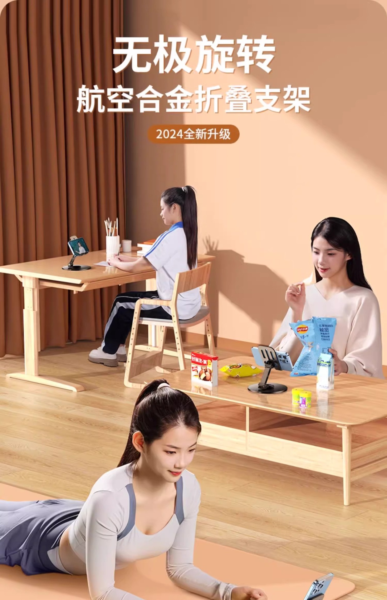 新款旋转铝合金手机支架桌面平板直播手机支架网课多功能折叠支架