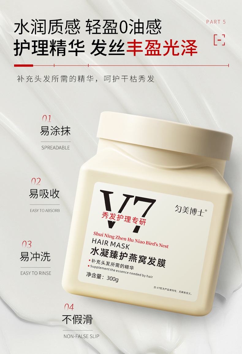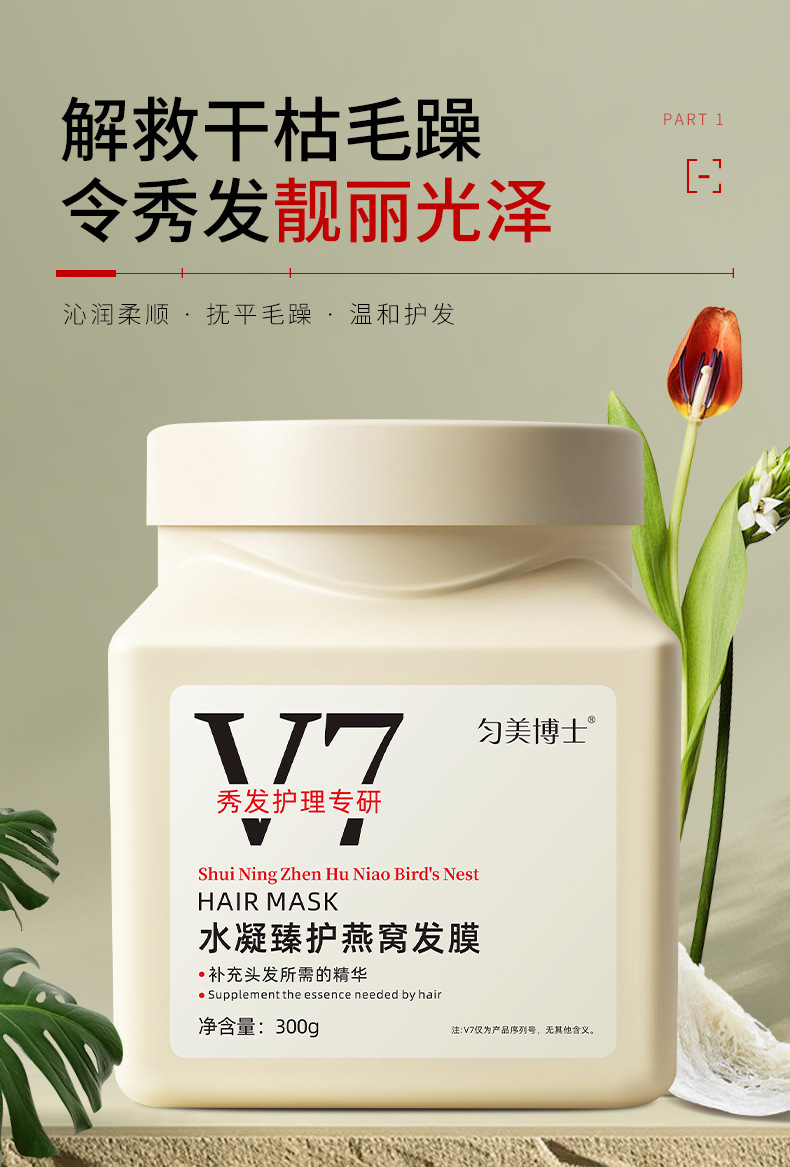 Dr. Yunmei V7 ハイドレーティング ツバメの巣 ヘアマスク リペア ドライ ヘアマスク スムースケア 縮れ防止 蒸気フリー ヘアケア