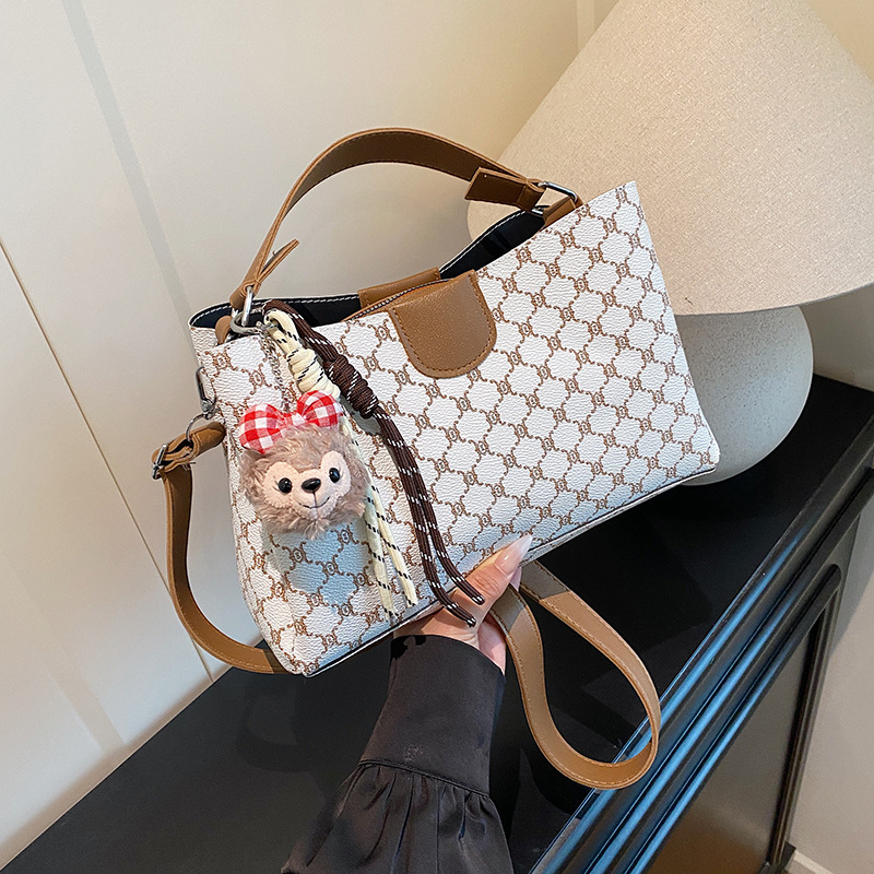 2025 クロスボーダープリントレディースバッグトレンディなファッション通勤バッグレディースハイエンドコントラストカラーシングルショルダークロスボディバッグトートバッグ