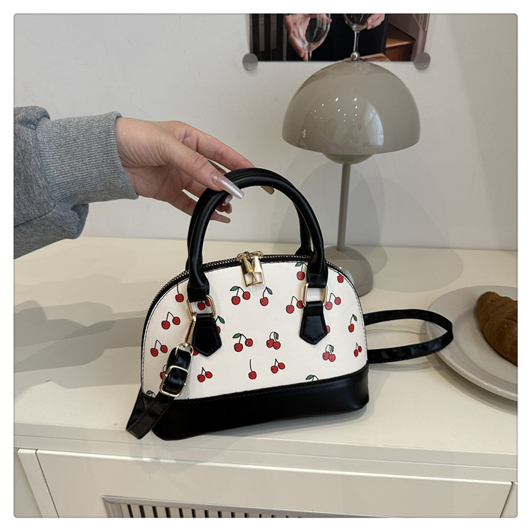 かわいい通勤シンプルファッションレディースバッグトレンディな外国風2025新プリントチェリー大容量ショルダーハンドバッグ