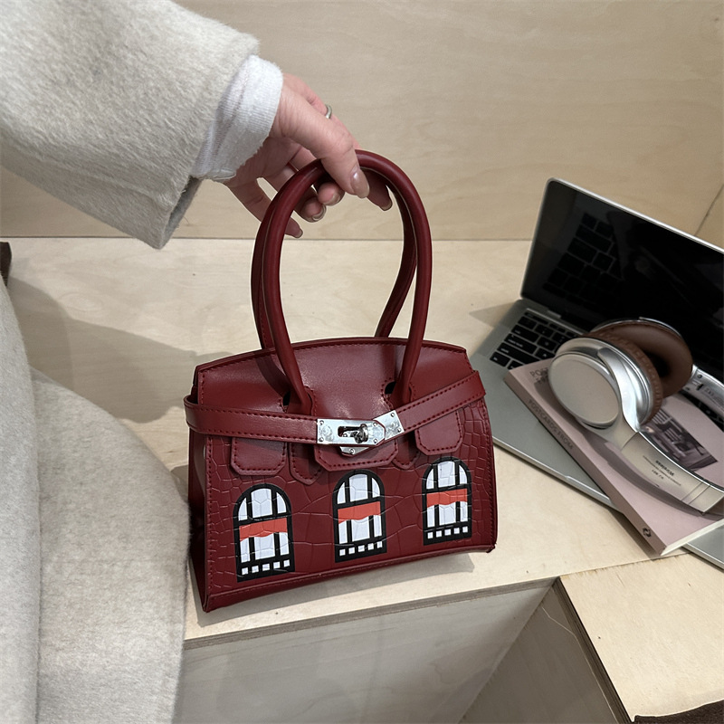 包包女2025新款潮经典撞色小房子20CM铂金包手提单肩斜跨女包bags