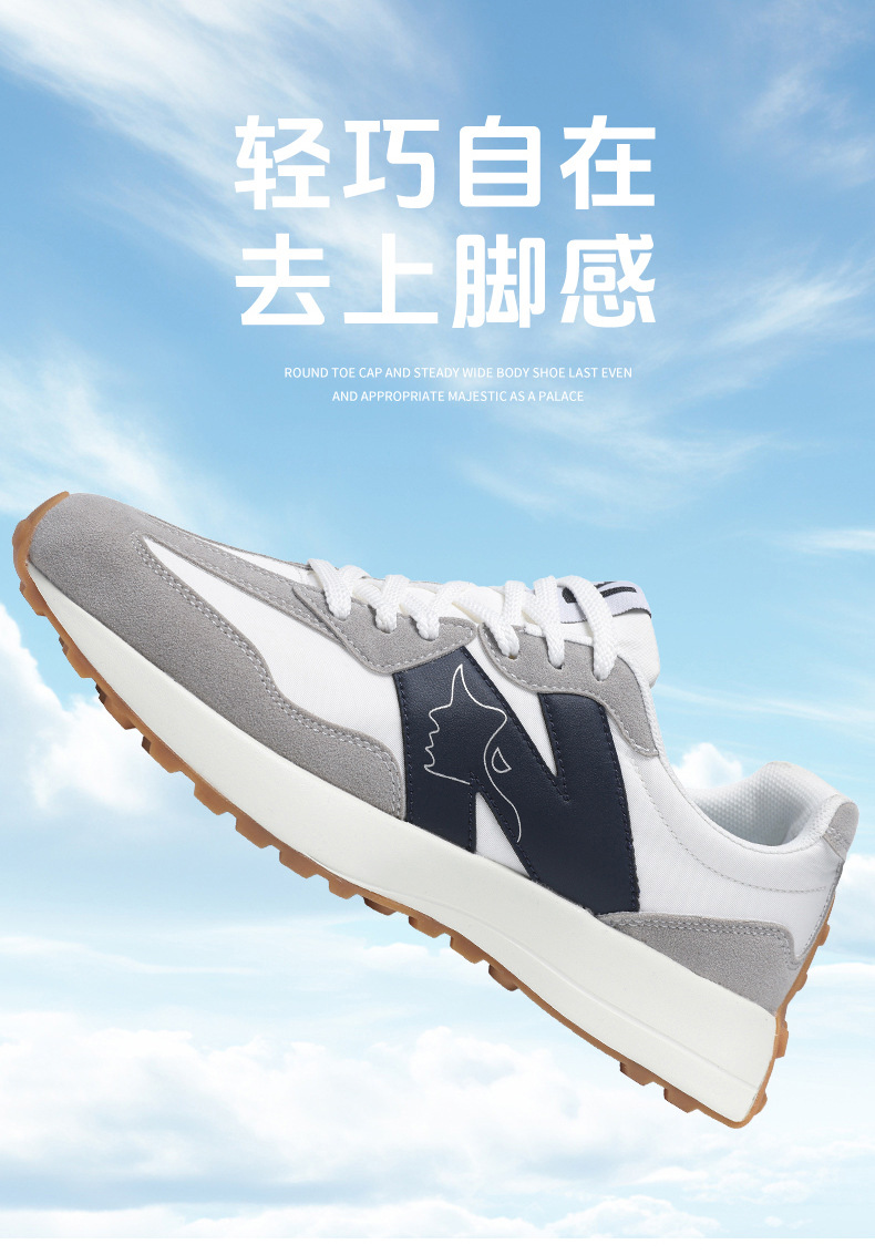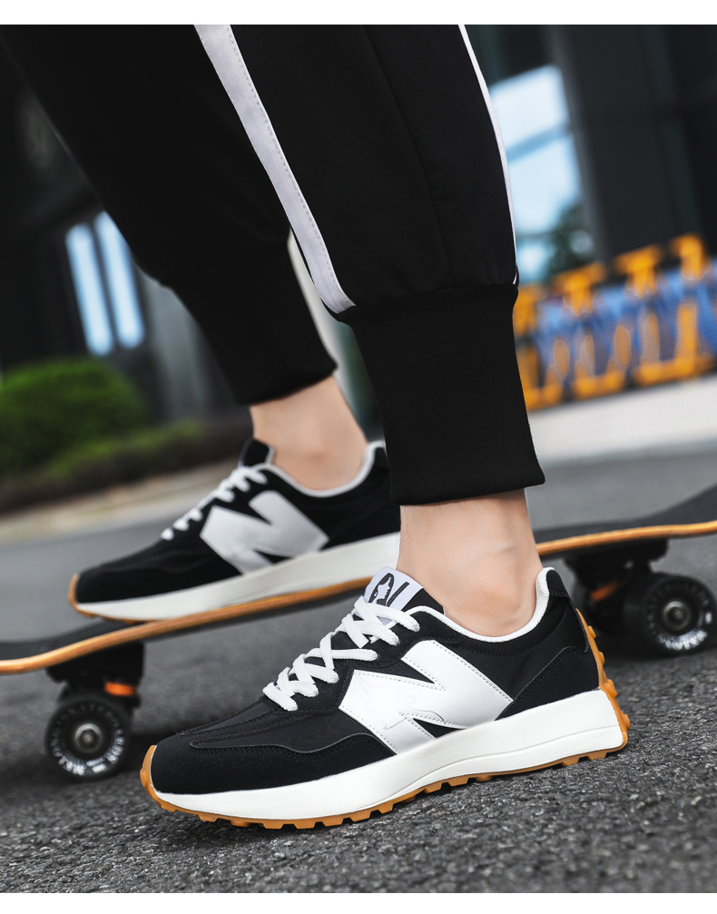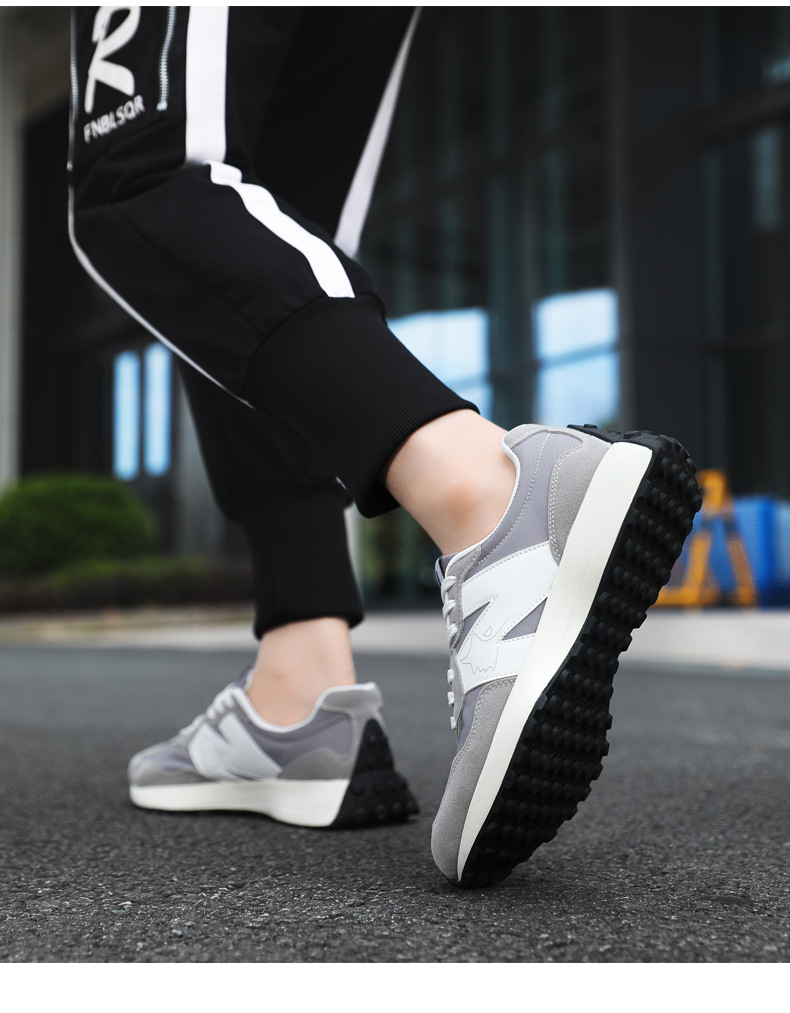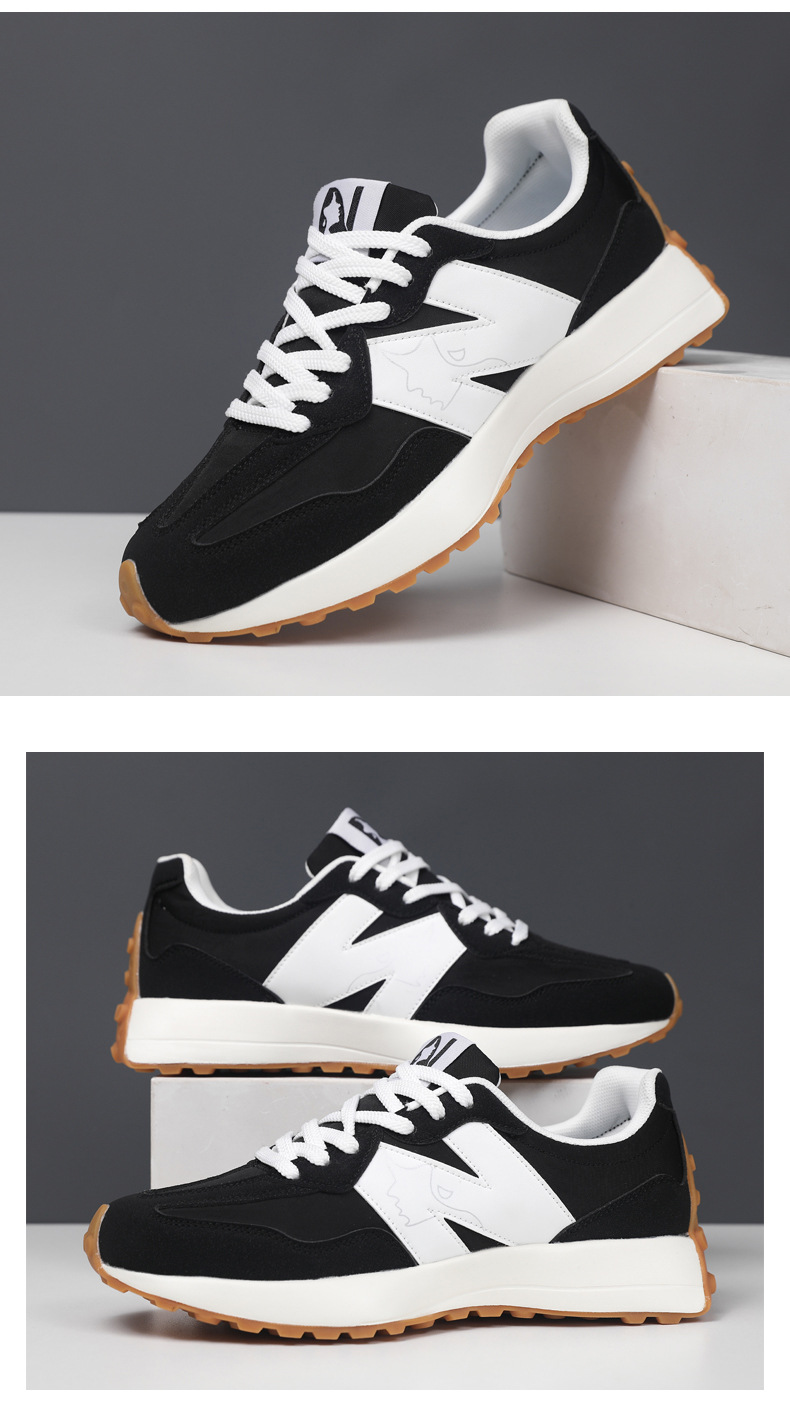 2025年春新作スポーツシューズ、軽量で通気性の良い厚底N字型新327スモールウエスト、男女カップル同じスタイルウォーキングシューズ