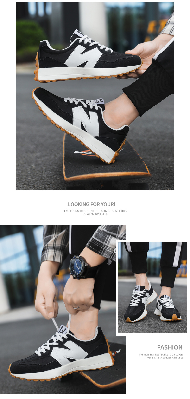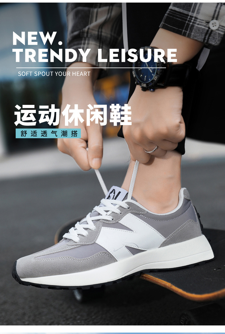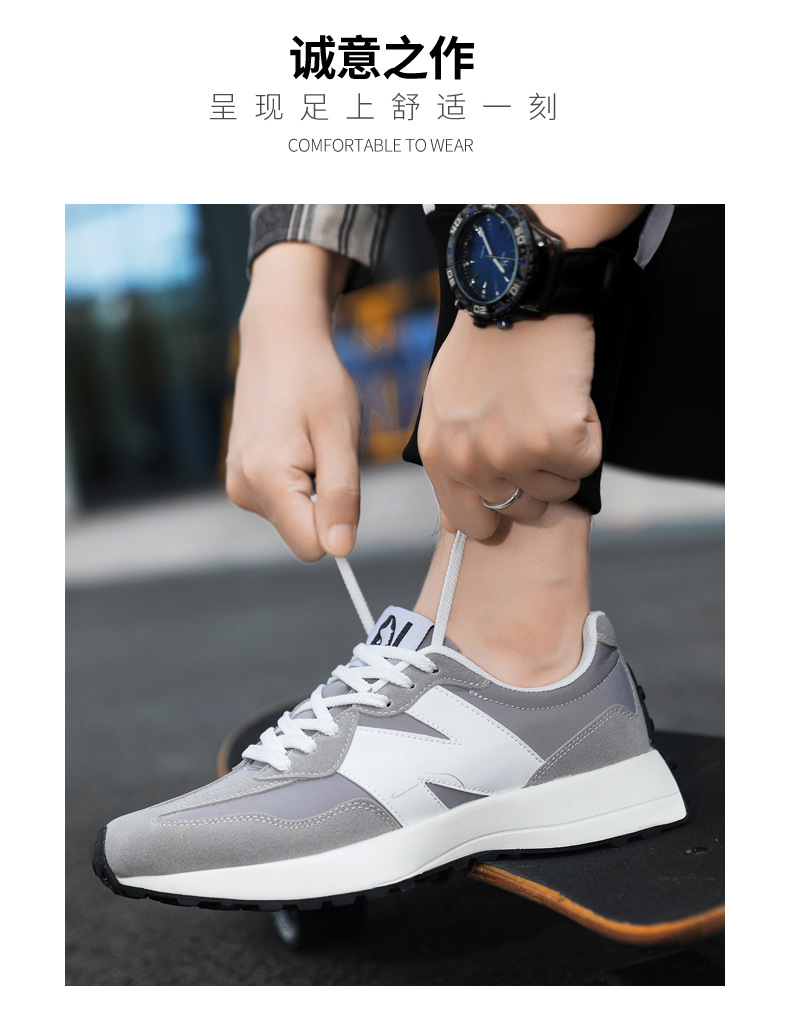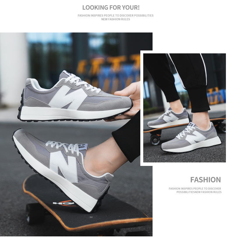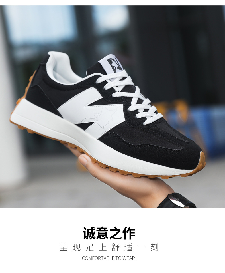 2025年春新作スポーツシューズ、軽量で通気性の良い厚底N字型新327スモールウエスト、男女カップル同じスタイルウォーキングシューズ