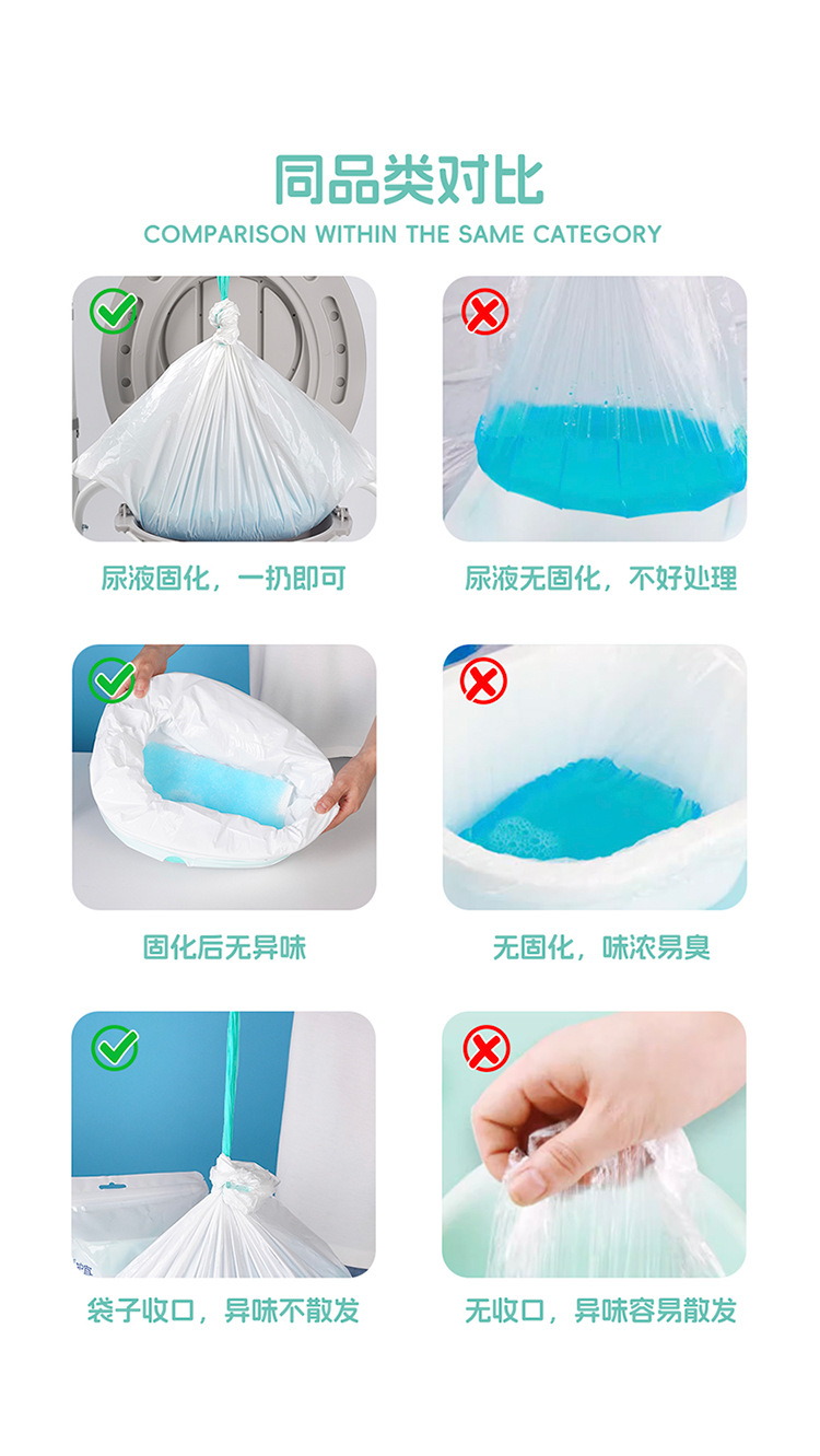 定制尿液吸水纸婴儿便桶袋含超强吸水垫养老院清洁袋抽绳超强吸收