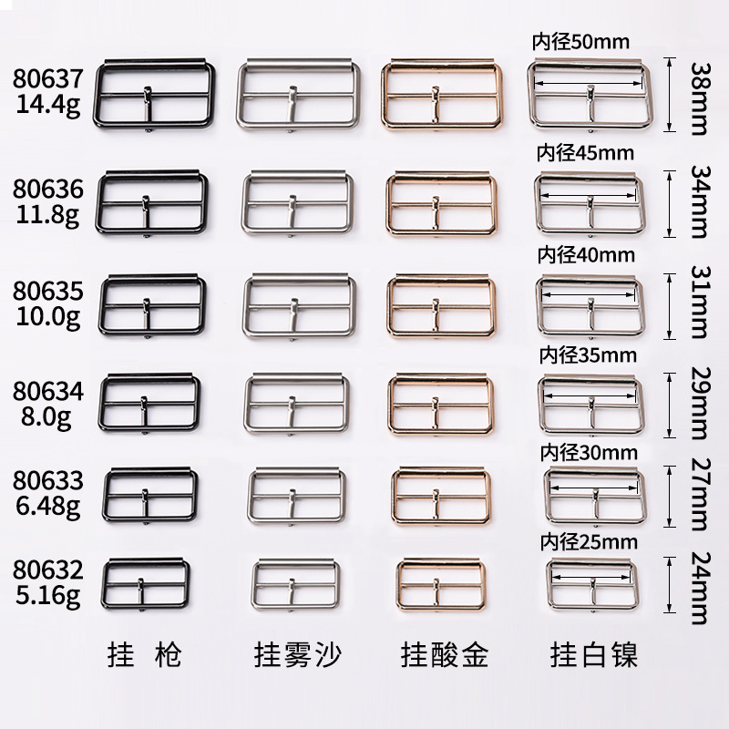 现货金属日子腰带扣 长方形三档调节扣箱包管子扣 腰带鞋服皮包扣
