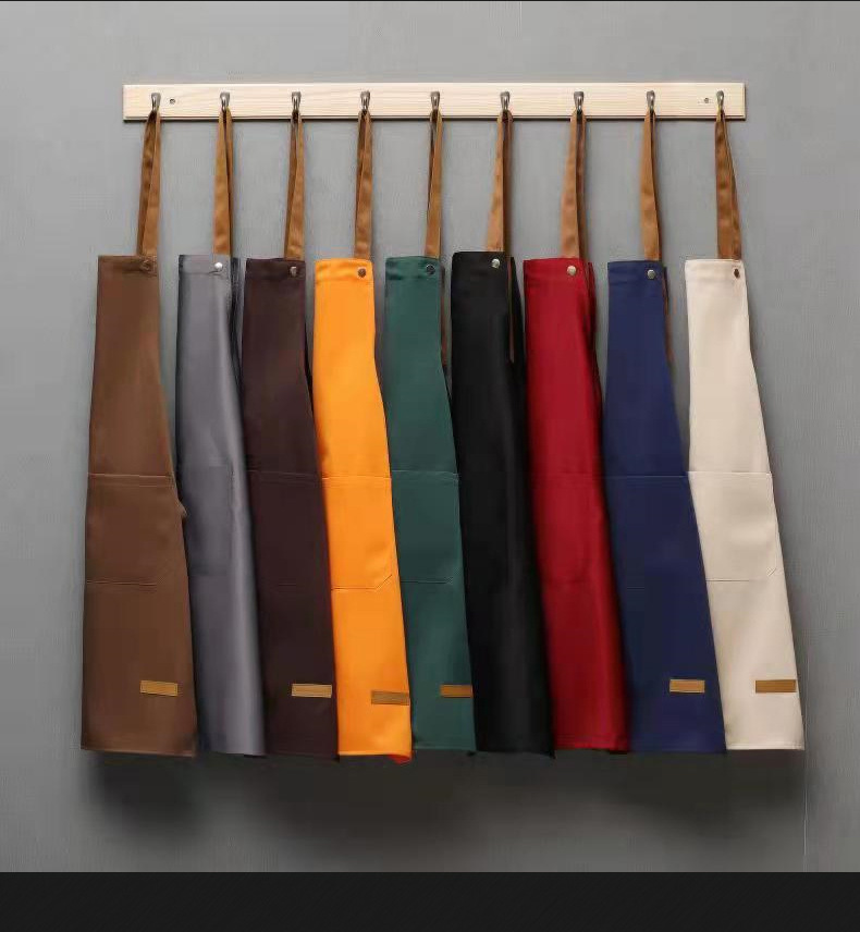 ロゴ印刷入りオーダーメイドエプロン、ミルクティー、フルーツミルクティー店、ネイルサロン、スーパーマーケット、飲食店向け、防水・防油作業服