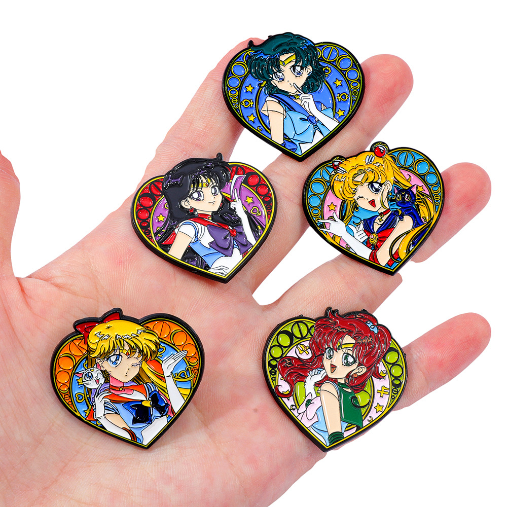 可爱卡通创意个性美少女战士金属徽章软萌美少女合金印刷胸针配饰