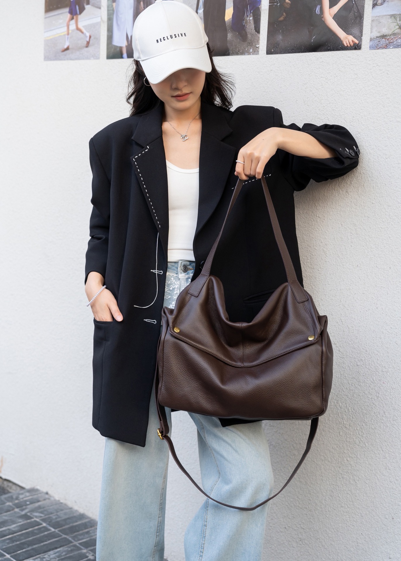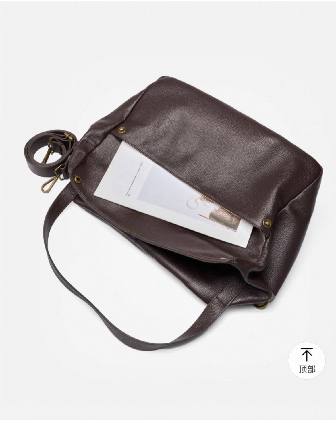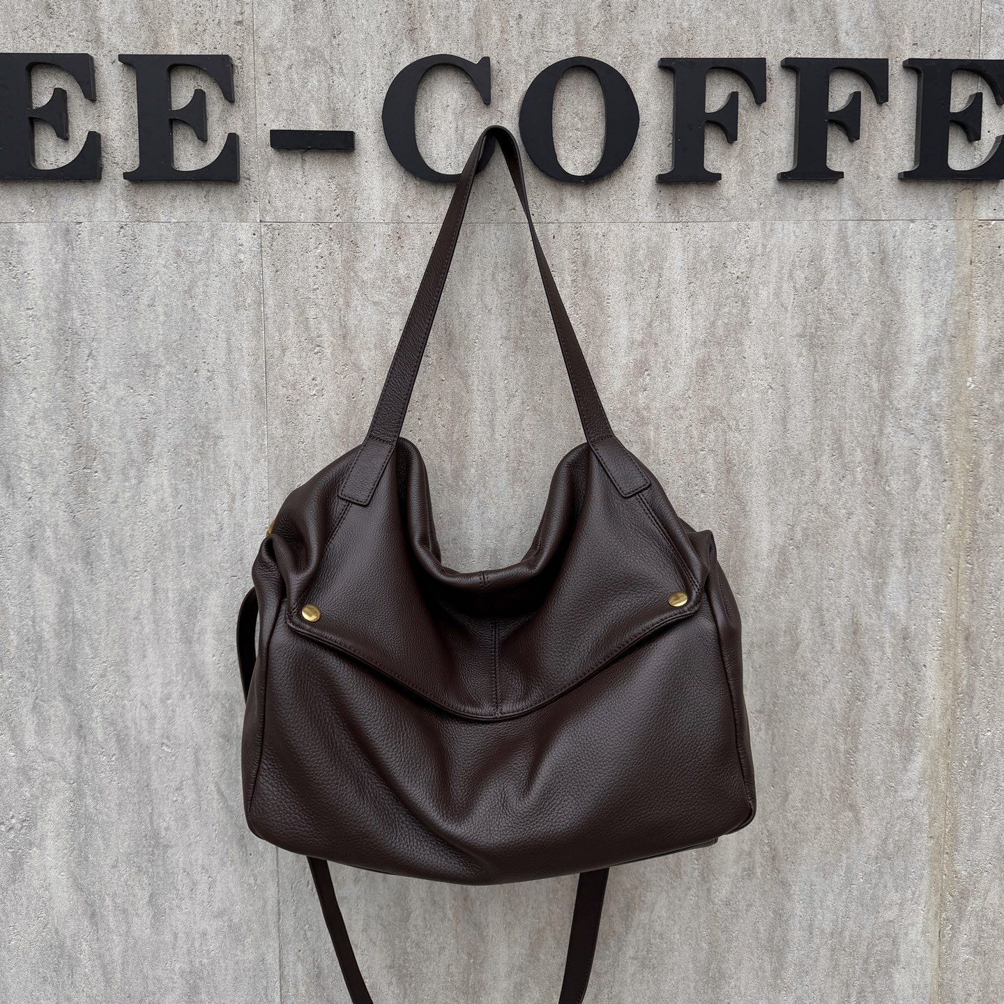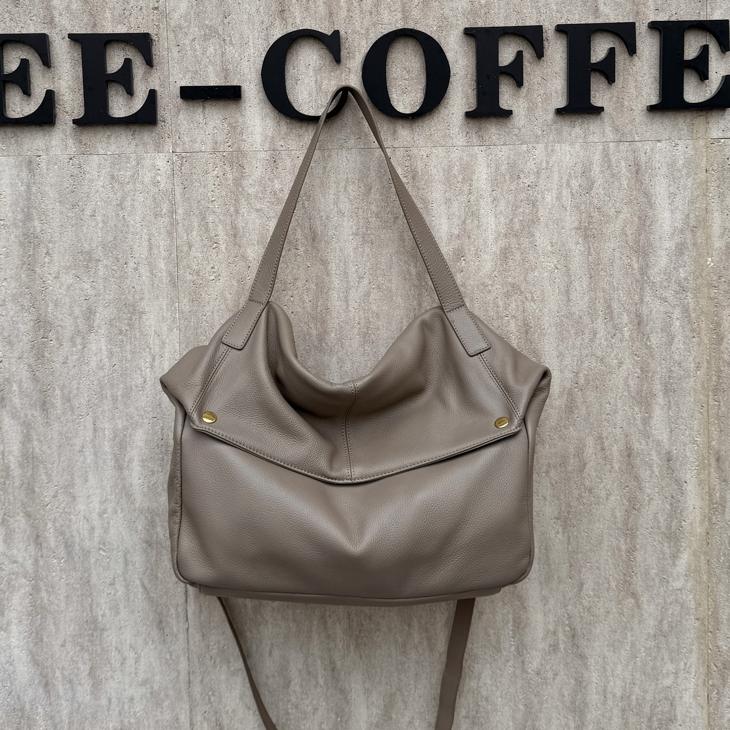 大容量质感头层牛皮托特包欧美风百搭复古简约软皮单肩包休闲女包