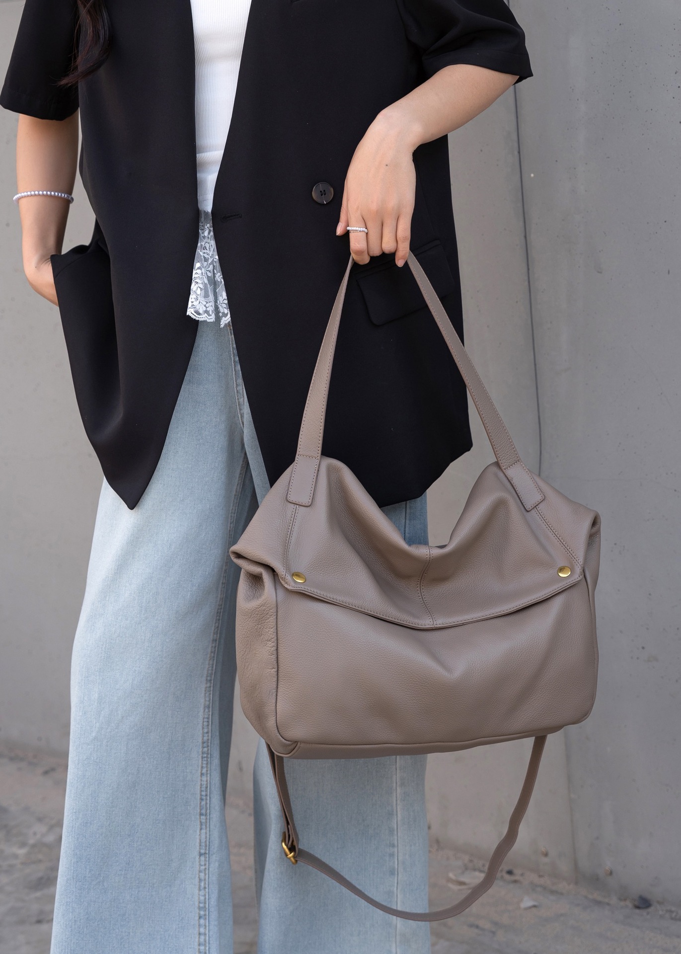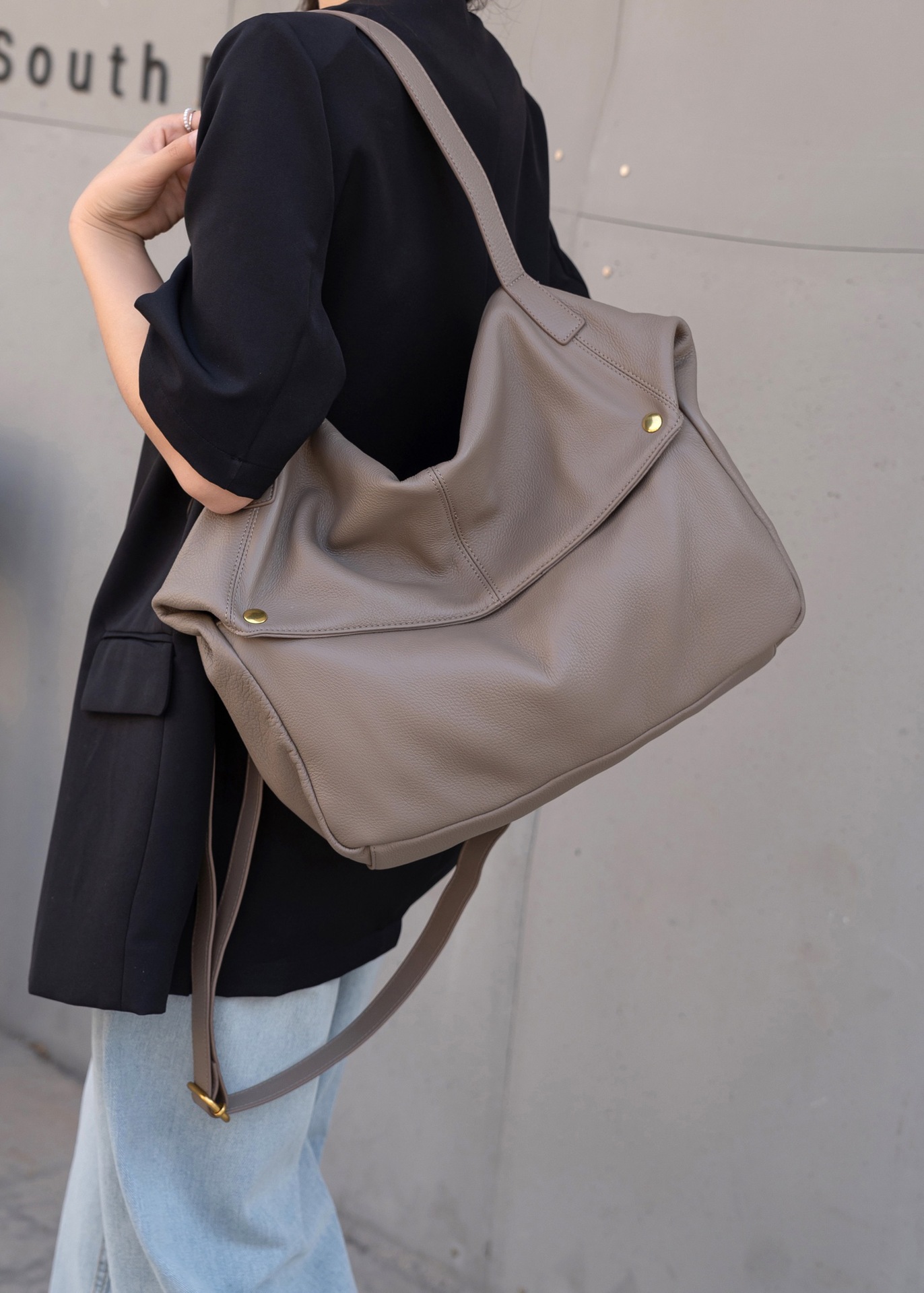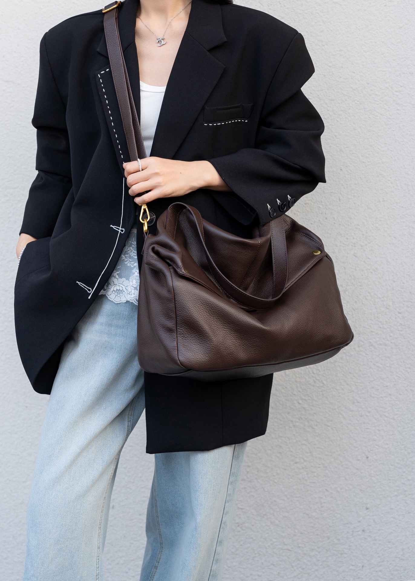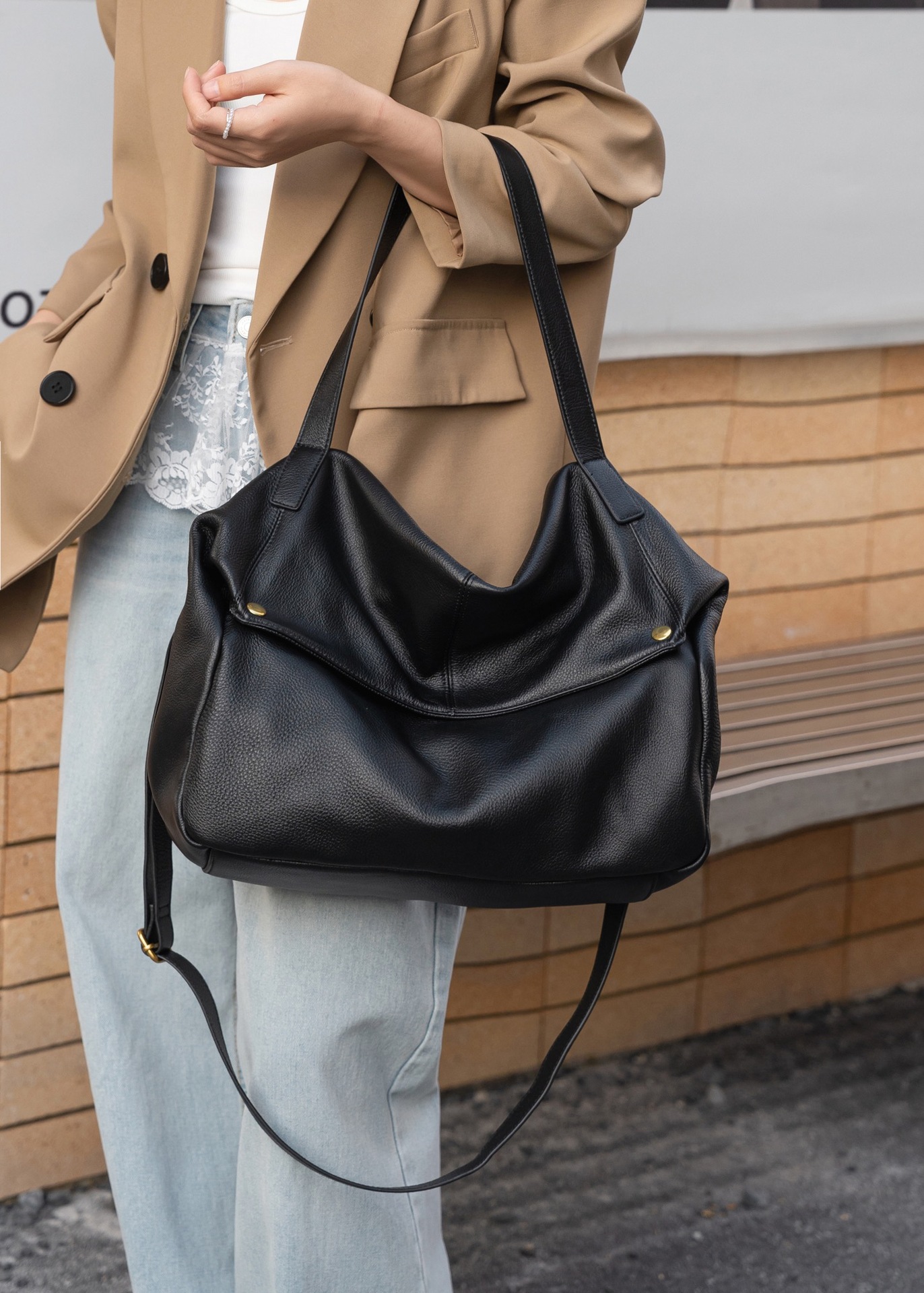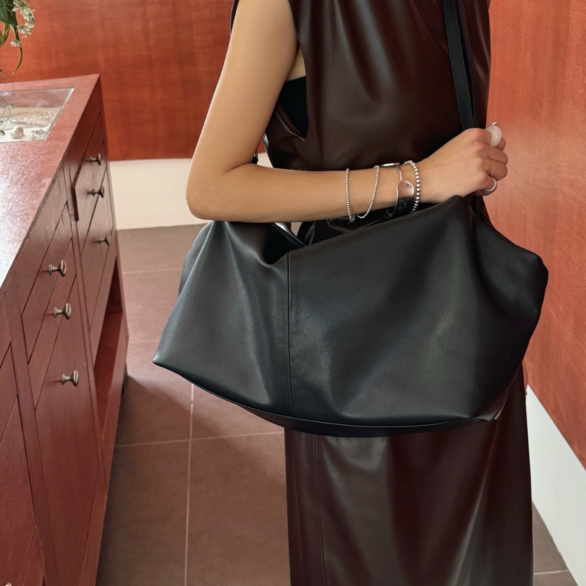 大容量质感头层牛皮托特包欧美风百搭复古简约软皮单肩包休闲女包