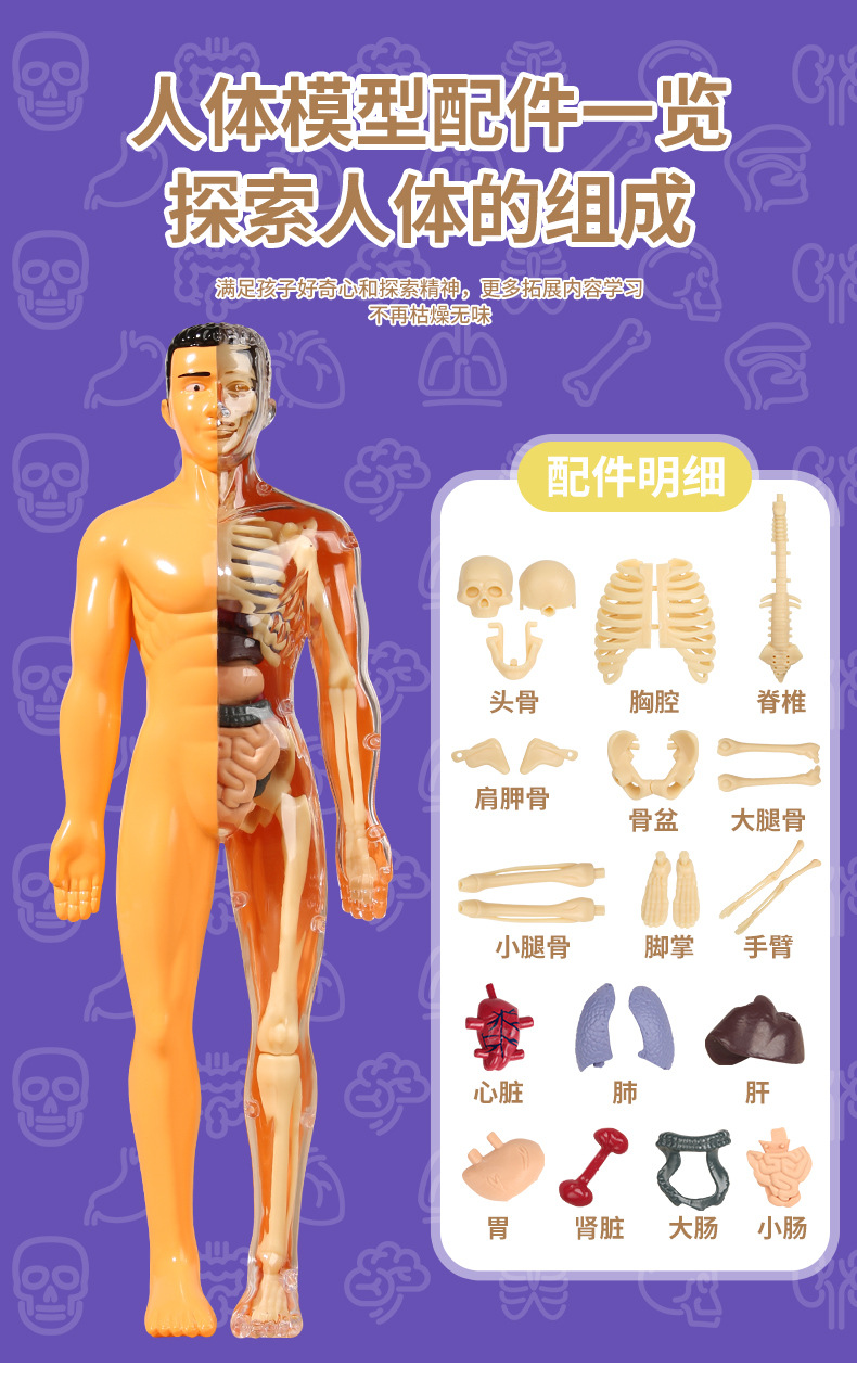 (跨境)儿童玩具解剖早教3d骨骼仿真人体骨骼结构模型拼装医学教