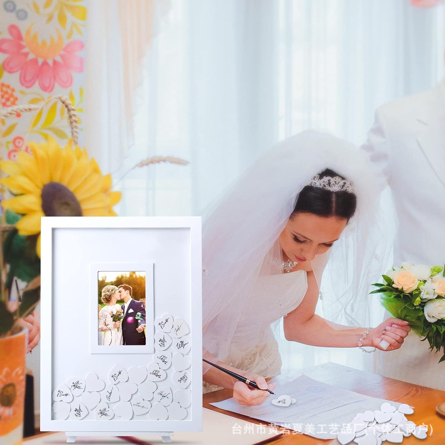 ヨーロピアンスタイルのウェディングサインインテーブルフォトフレームホワイトパインメッセージボードウェディングサインインボード誕生日ギフトアレンジメントテーブル