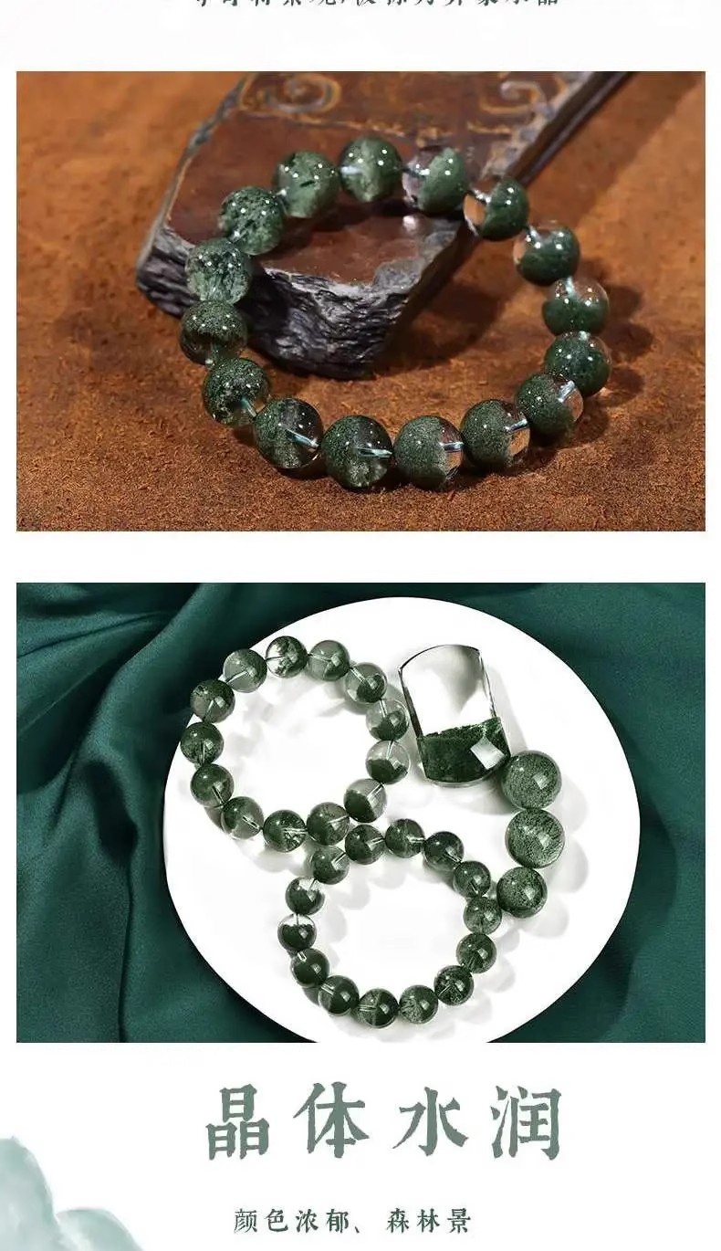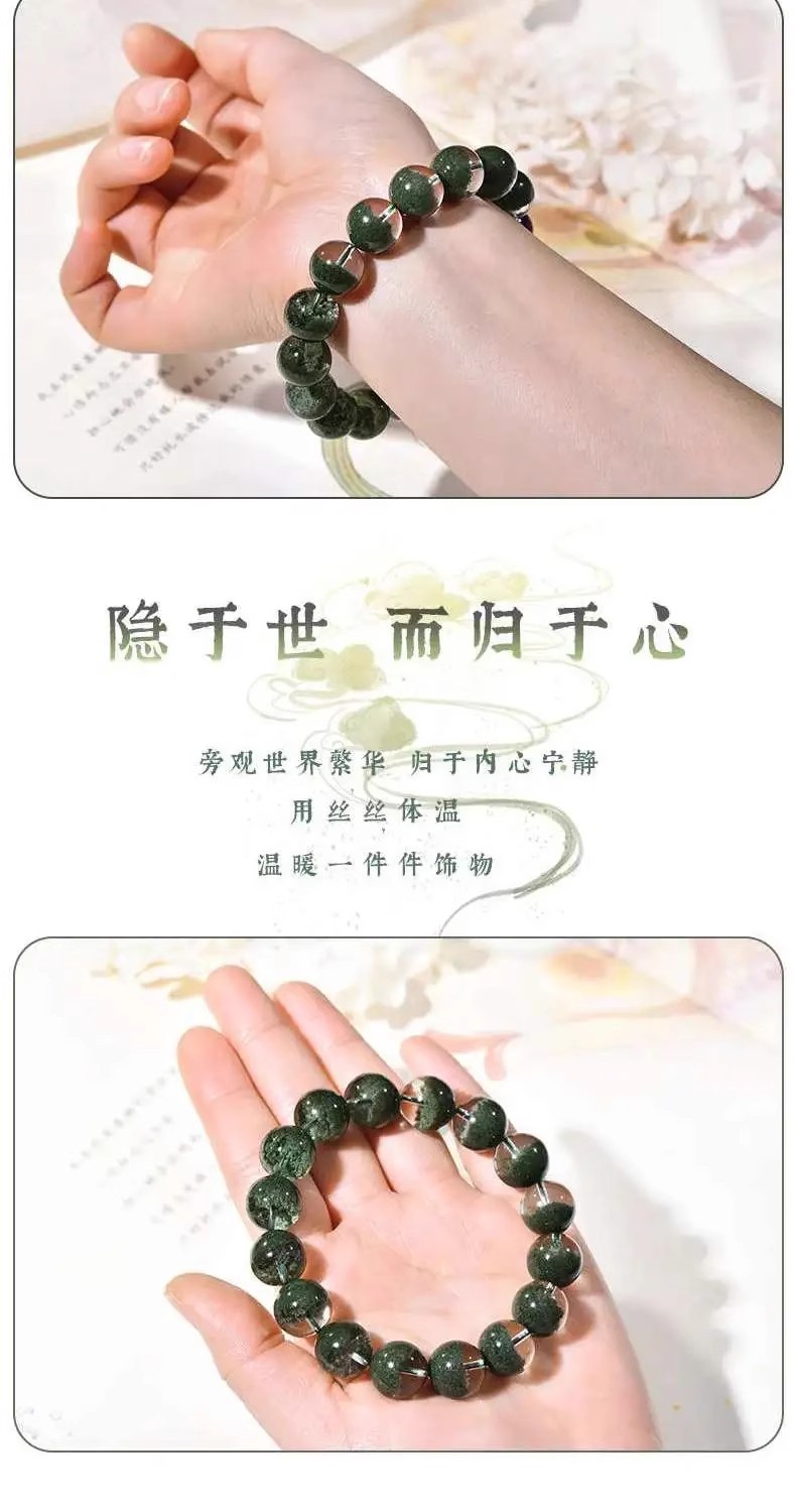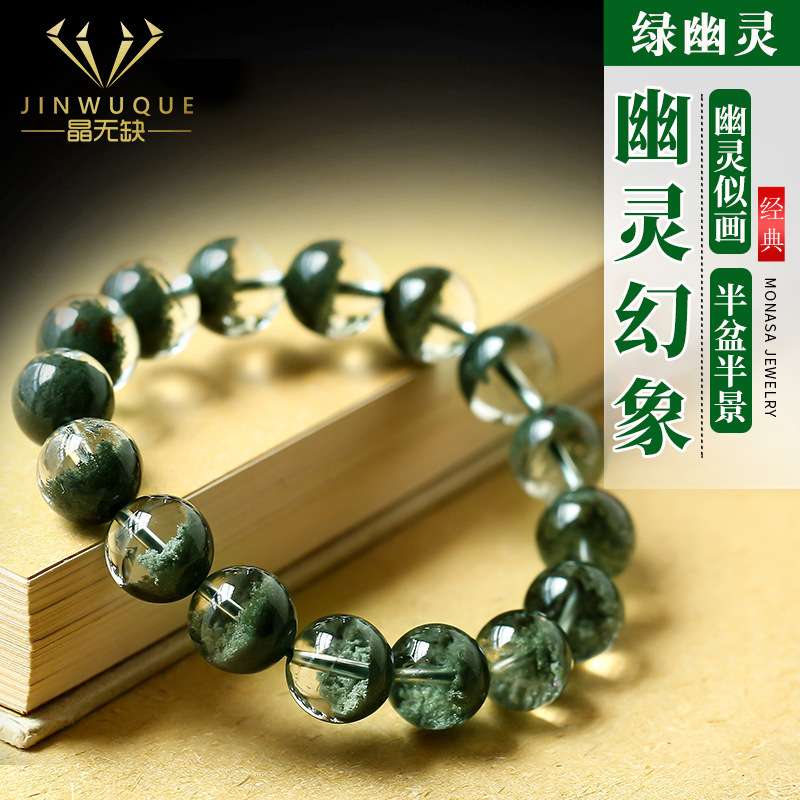 ブラジル天然緑幽霊水晶ブレスレット女性千層山緑幽霊聚宝盆緑手串男珠プレゼント