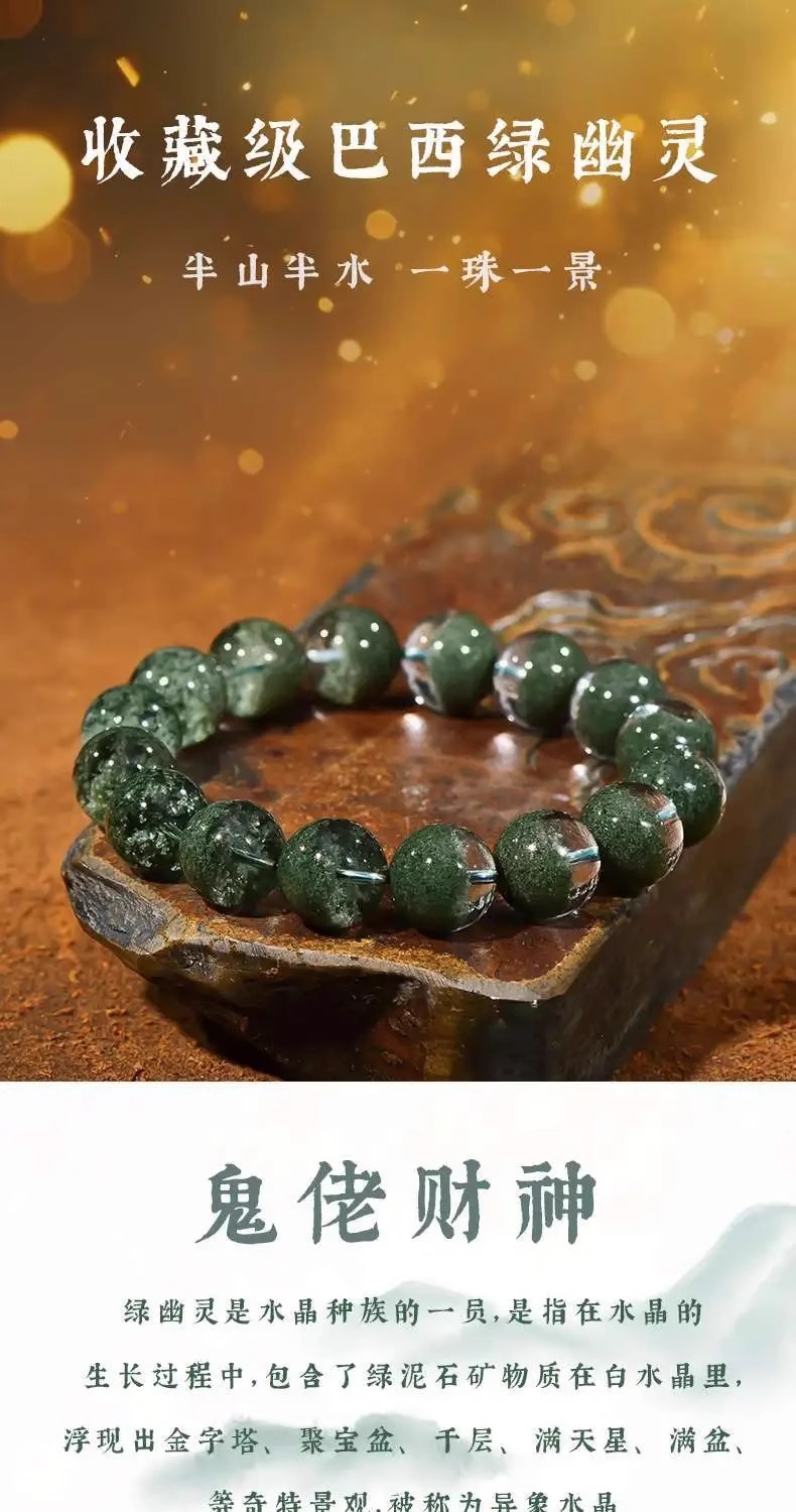 【店铺热销】天然巴西绿幽灵手串手链男绿幽灵聚宝盆散珠单珠直销
