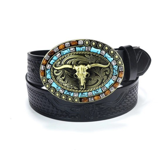 クロスボーダーウエスタンカウボーイベルトビッグボードトレンディレトロユースレトロメンズパンクエンボスレザーベルト