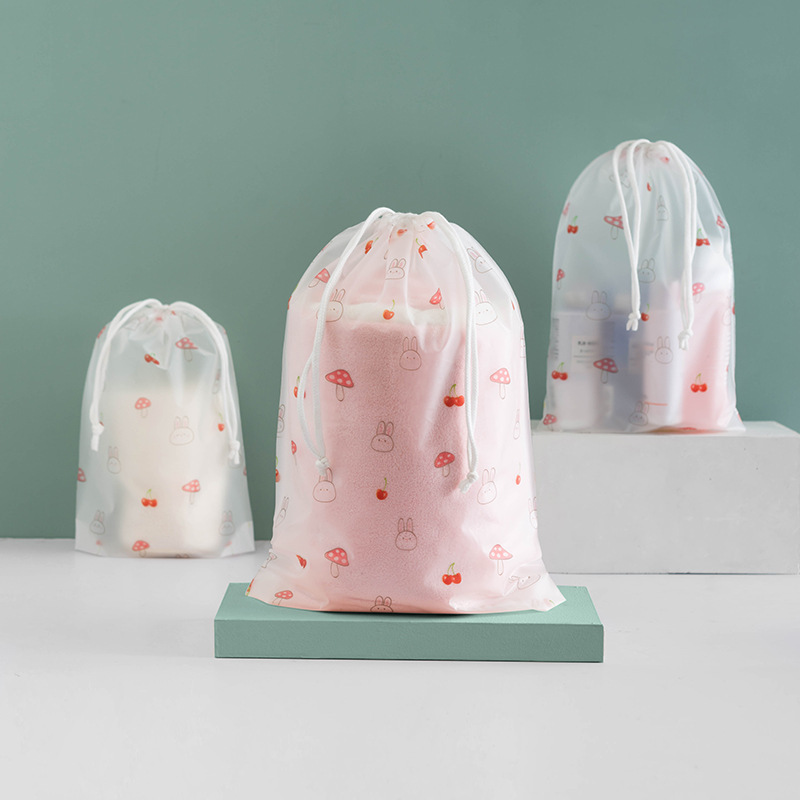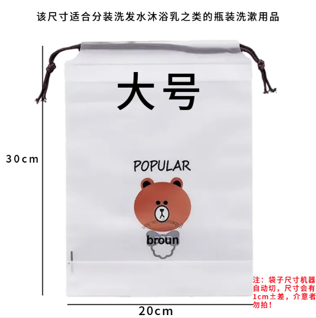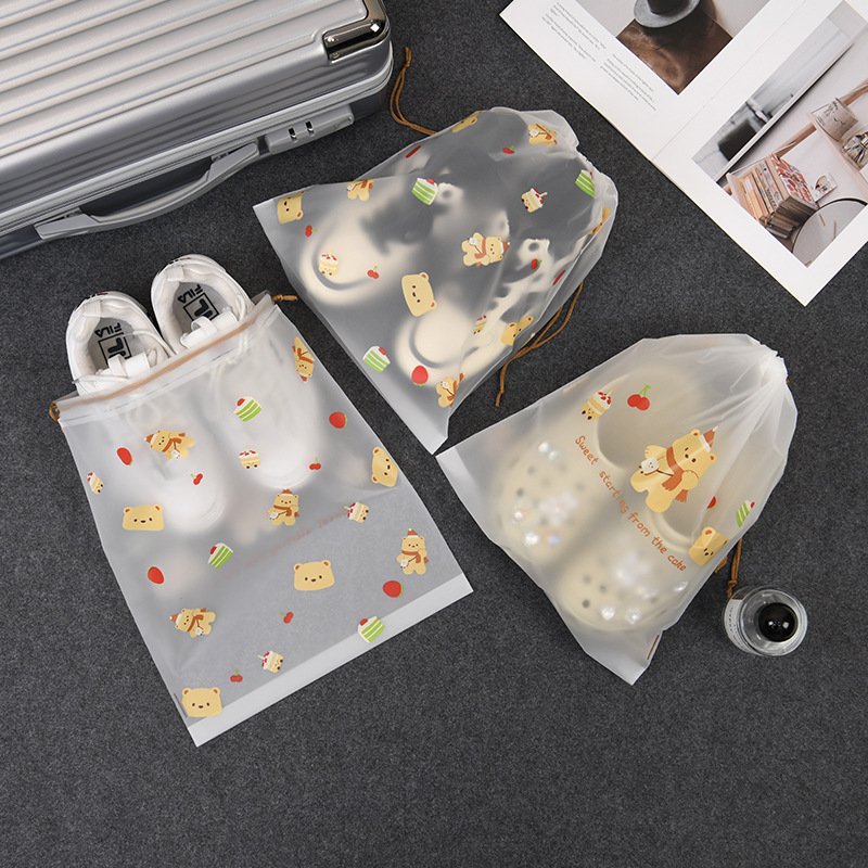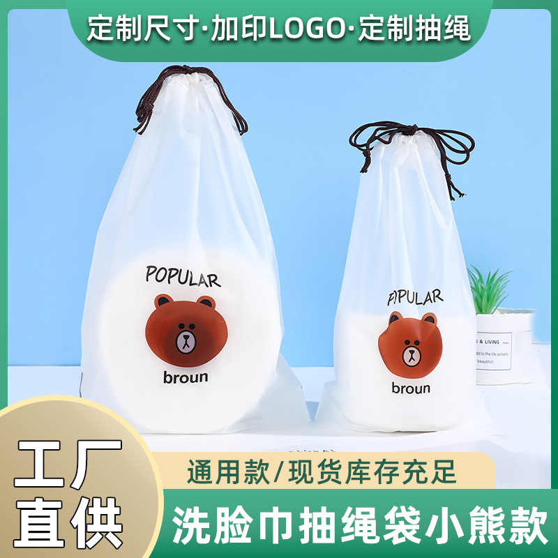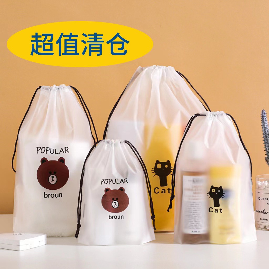 スポット pe クマ巾着ポケットつや消し半透明ポータブル巾着袋 eva 巾着衣類包装袋卸売