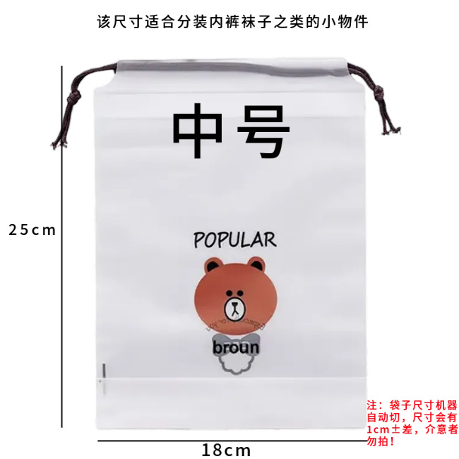 ベアーフロストポケットタオル下着靴下収納袋透明プラスチック巾着袋洗顔タオル包装袋