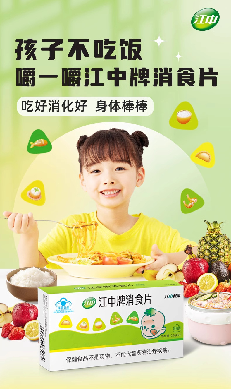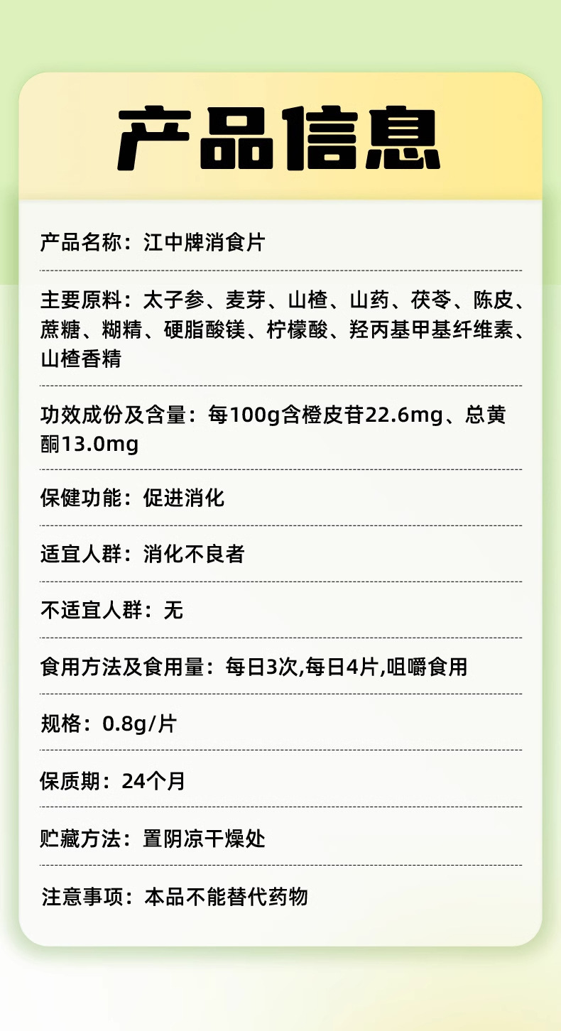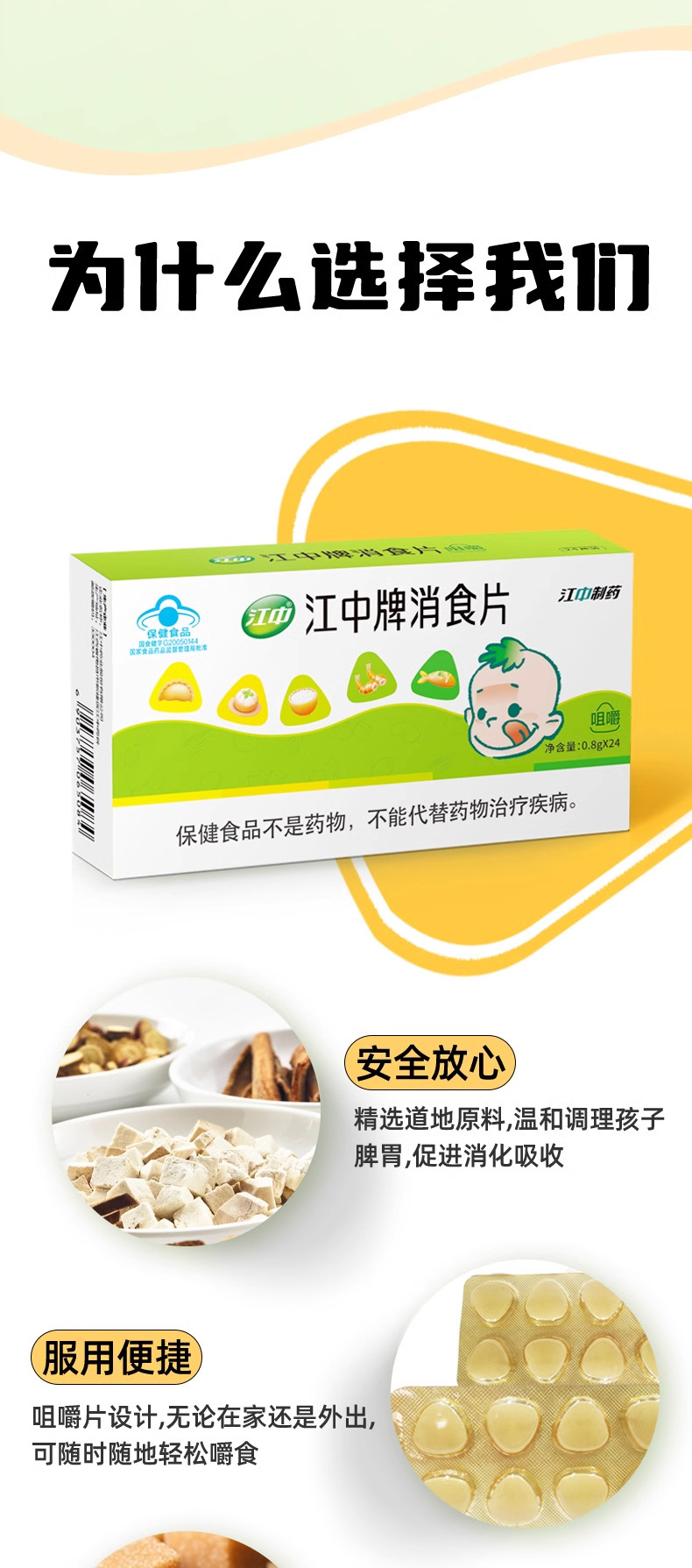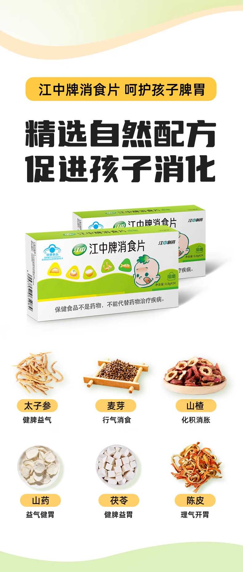 江中牌消食片促进消化厌食胃胀气挑食成人消化不良儿童积食健脾