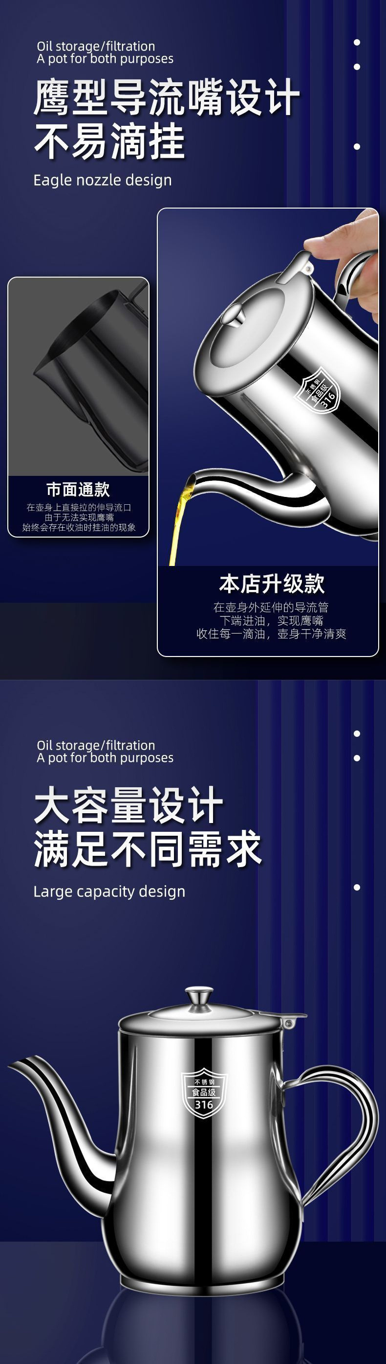 フィルターオイルポット 316 ステンレス鋼オイルポット家庭用キッチン漏れ防止オイルタンクオンスオイルボトルコンテナオイルフィルター