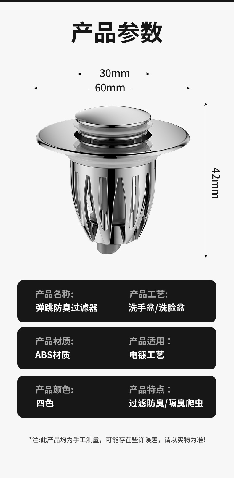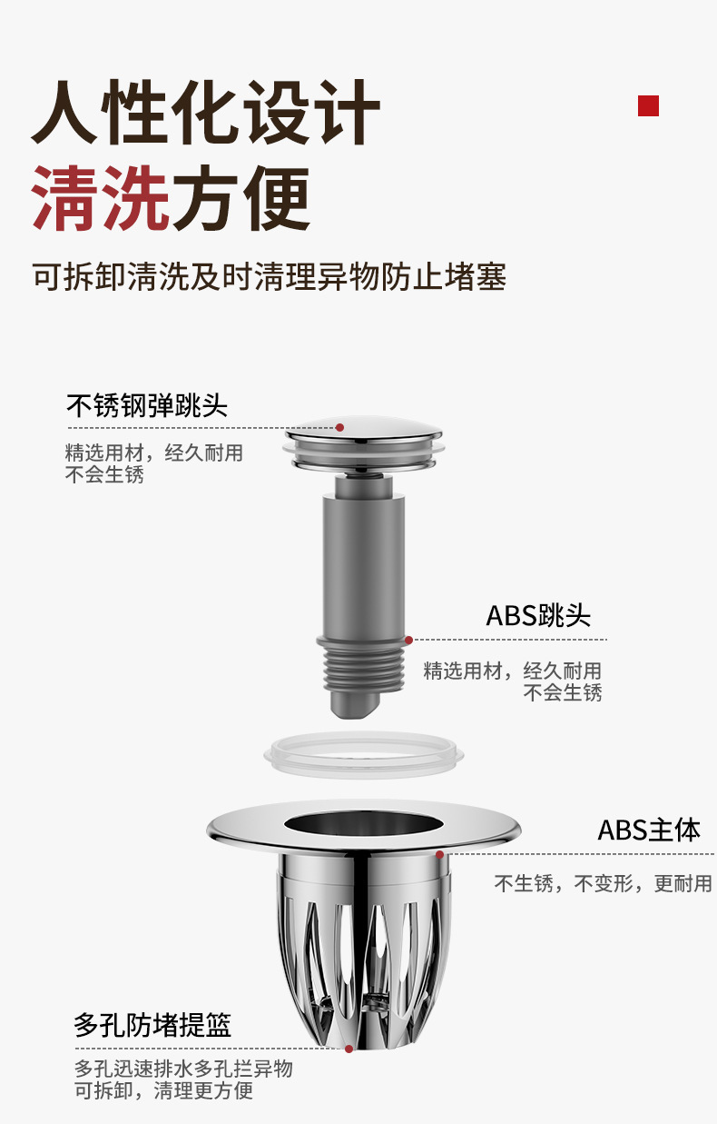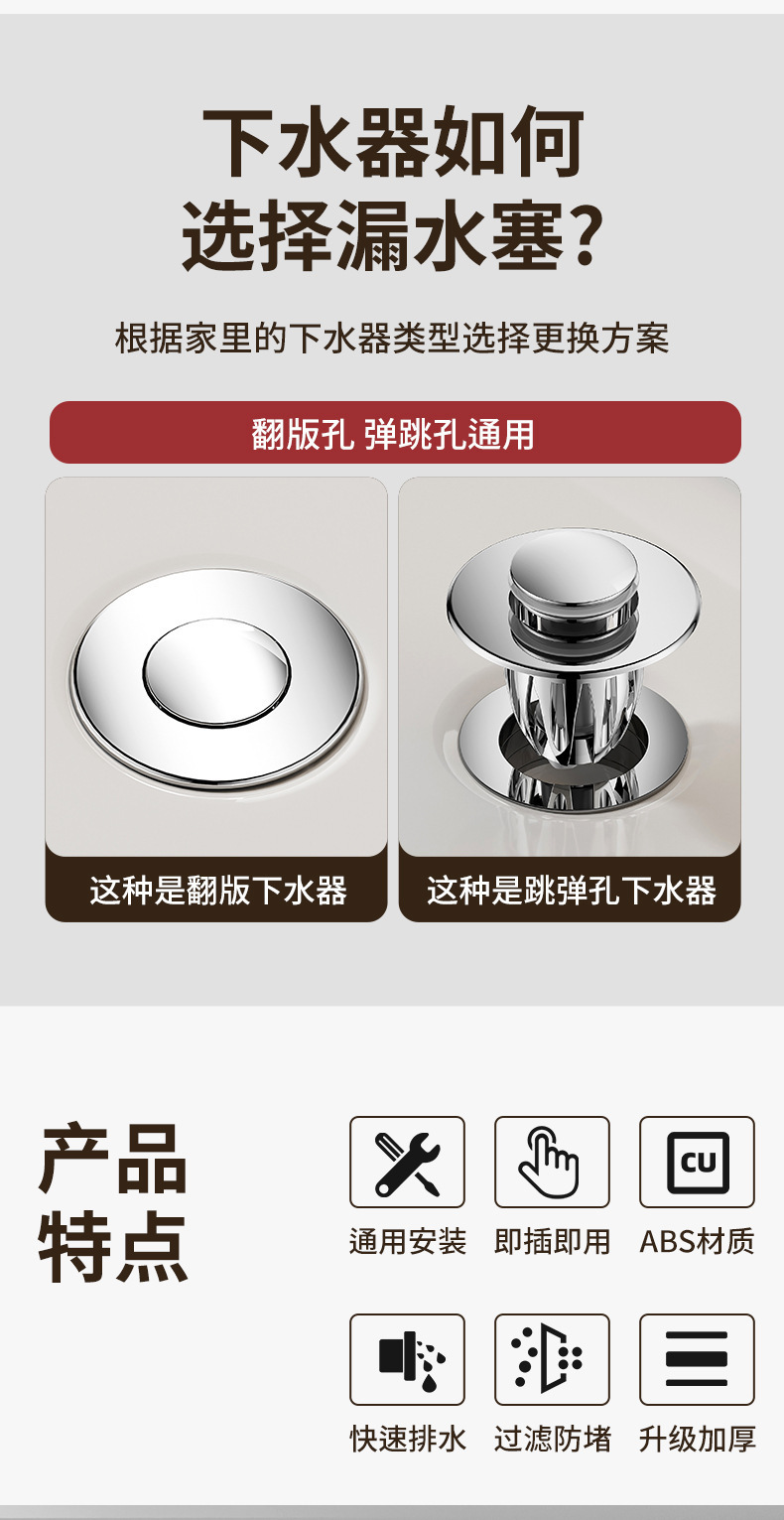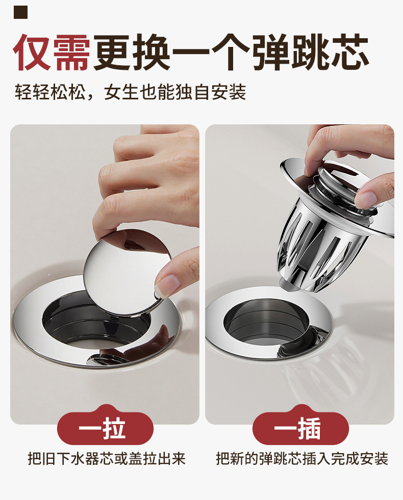 洗手盆漏水塞子按压式弹跳芯下水器过滤网洗脸池面盆台盆配件通用