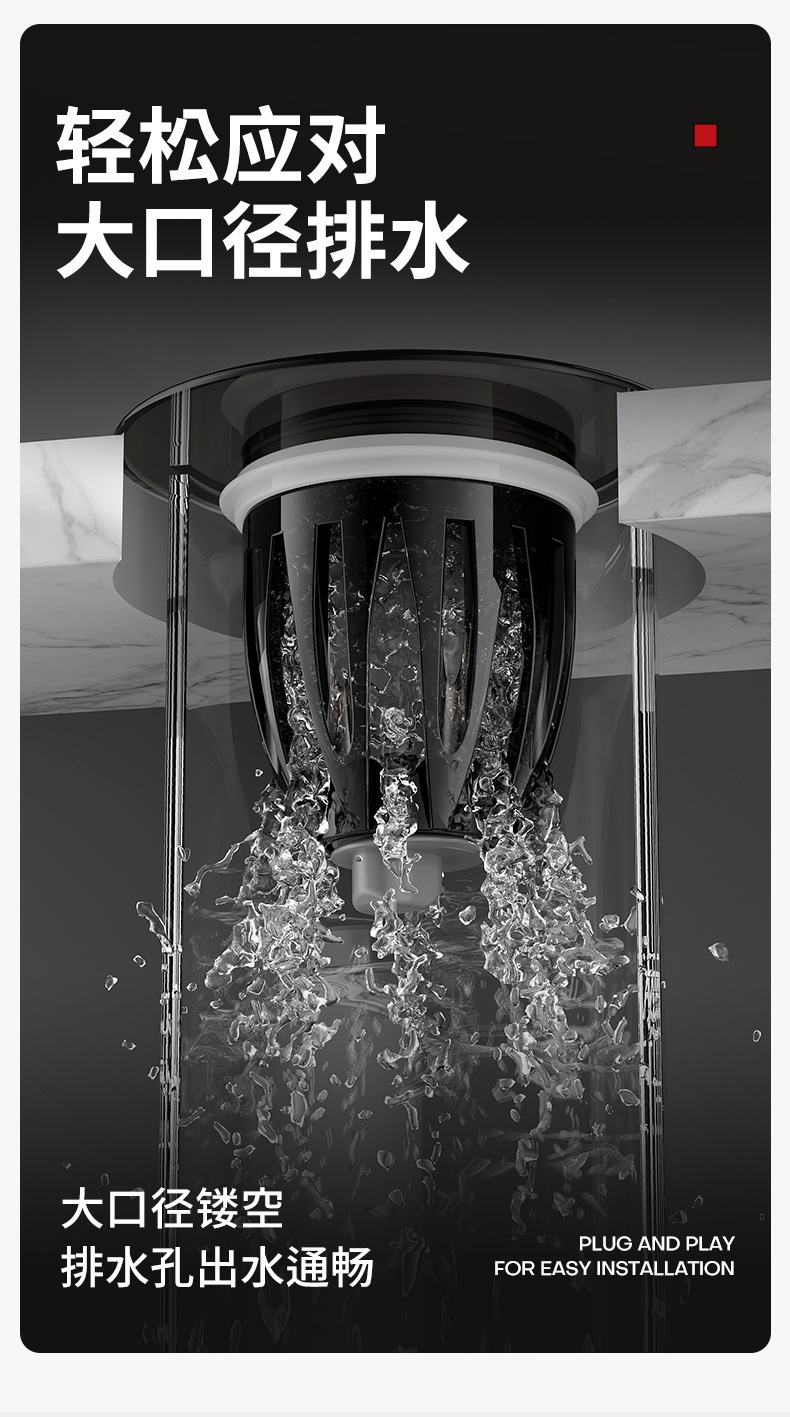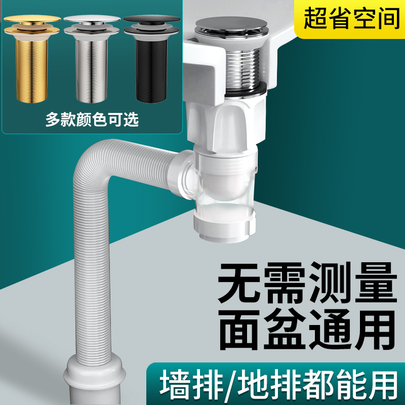 洗手盆面盆下水管防堵塞排水管防臭漏水塞洗脸池下水器配件省空间