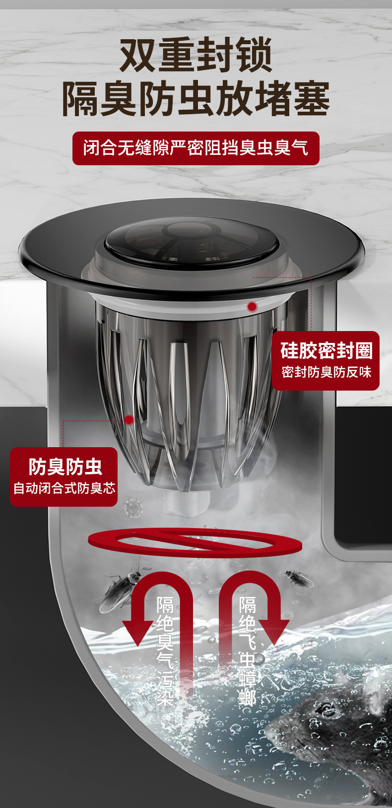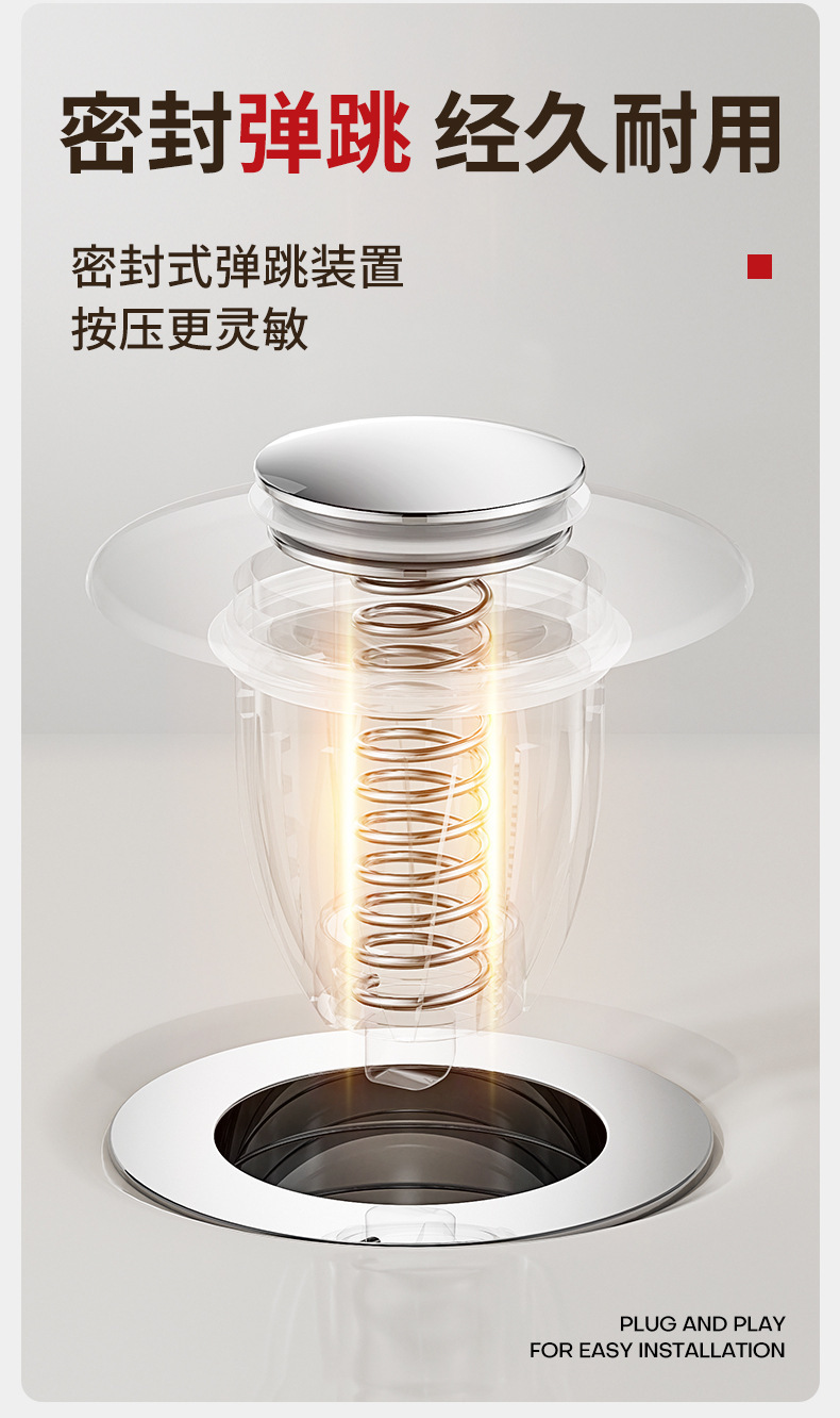 洗面器水漏れプラグ洗面器バウンスコア下水器プッシュ式部品防臭防止フィルター排水神器