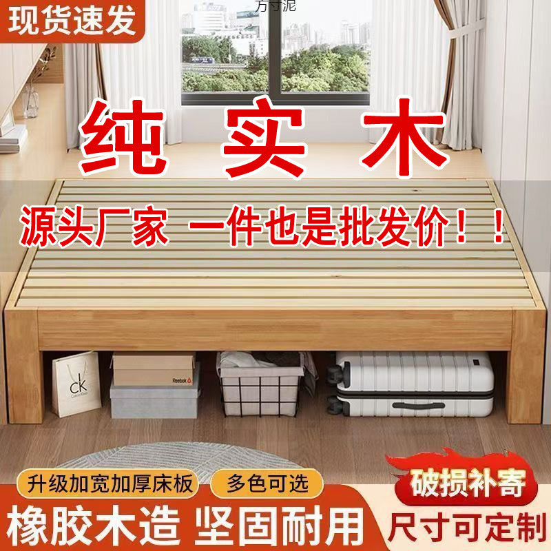 無垢材畳列フレームベッドフレームベッドサイドなしシンプルなサイズ任意の小さなアパートメントベッドバックショートベッド卸売