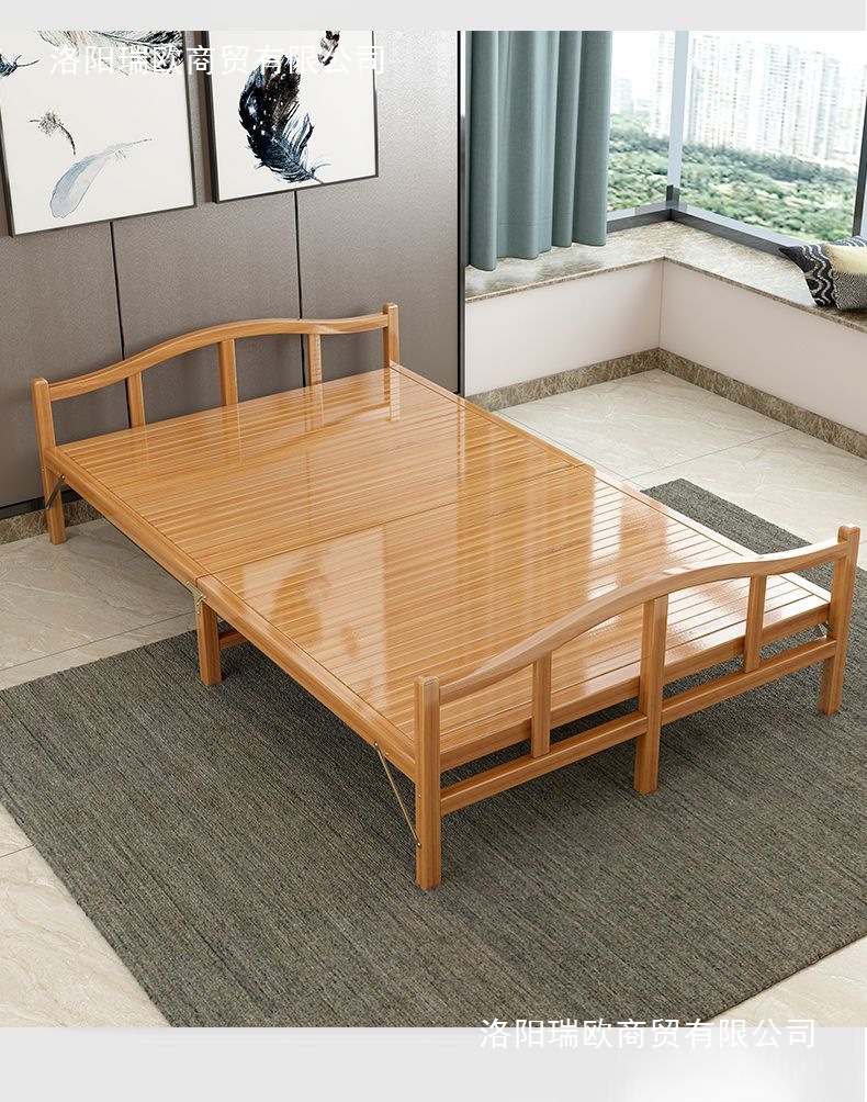 夏の竹ベッド安い折りたたみベッドシングルダブルホーム大人の昼休み昼寝ハードボードクールベッド無垢材ボードベッド