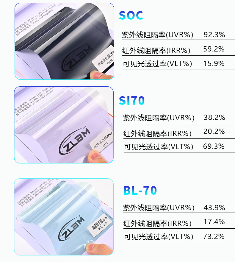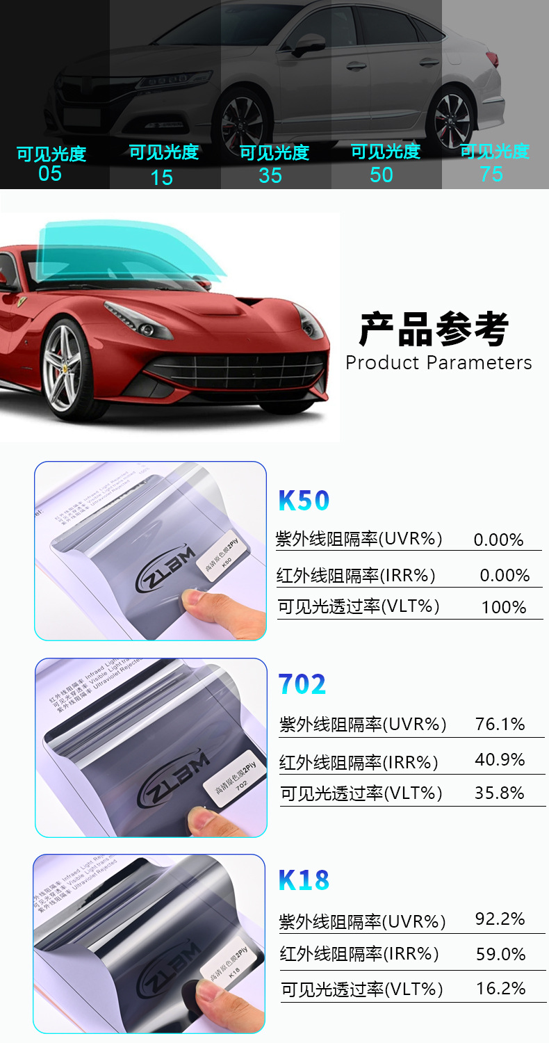 クロスボーダー卸売原色フィルムBシリーズ高断熱車フロントサイドストップ太陽光断熱フィルム紫外線防止