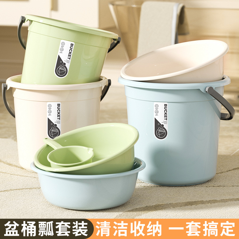 厚い蓋付き洗濯桶家庭用プラスチック桶学生寮風呂桶大サイズ貯水桶卸売りバケツセット