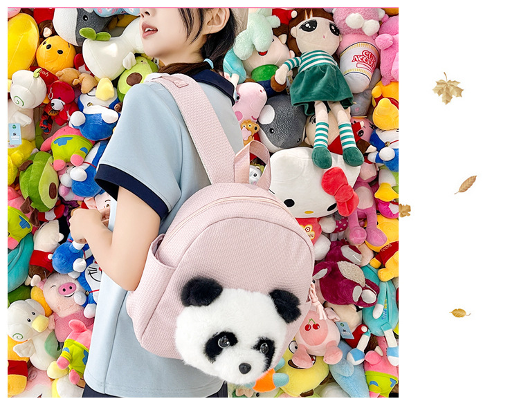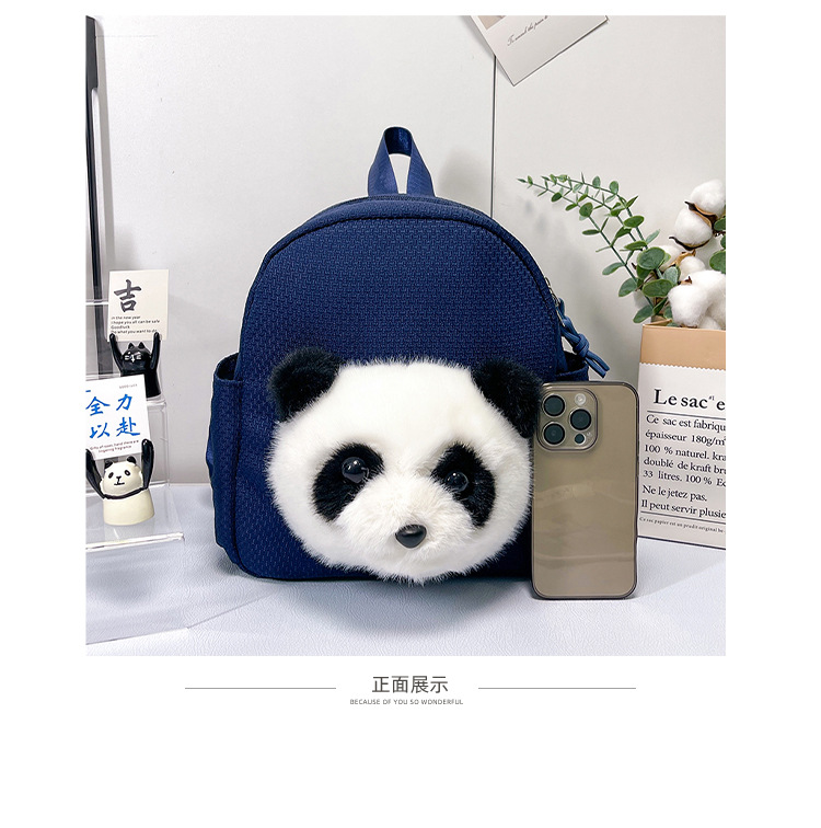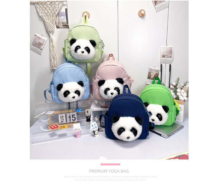 胖达熊猫双肩书包幼儿园男女孩宝宝旅行包包可爱儿童毛绒熊猫背包