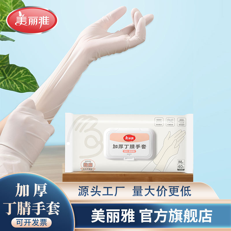 美しい雅はニトリルゴム手袋を厚くして、使い捨ての皿洗い手袋をします。