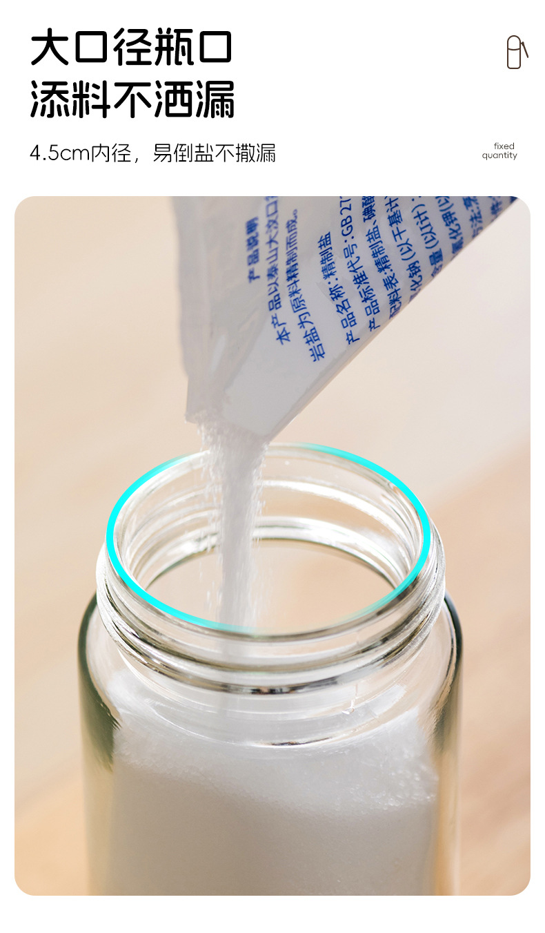 美丽雅定量盐罐调料盒玻璃厨房调料罐防潮密封调味罐家用盐罐调味