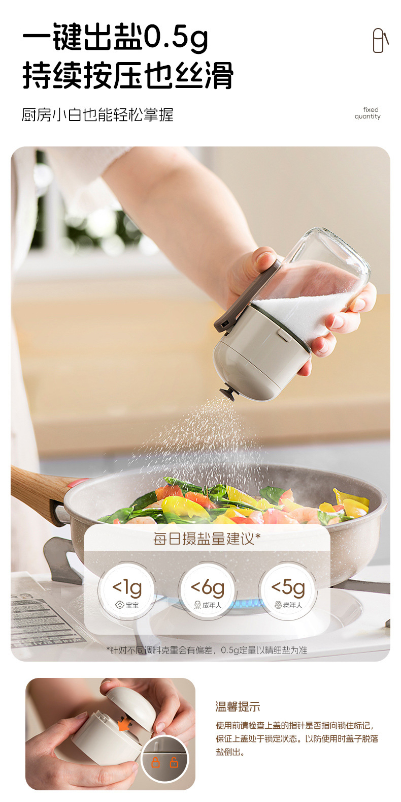 定量盐罐调料盒厨房调料罐防潮调味罐玻璃控盐瓶精准撒盐罐调味瓶