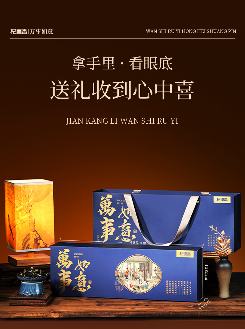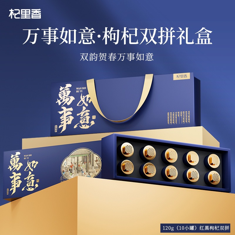 製品名 Qilixiang 120g (10 缶) 赤と黒のクコのダブルギフトボックス - すべてがうまくいくブルー
