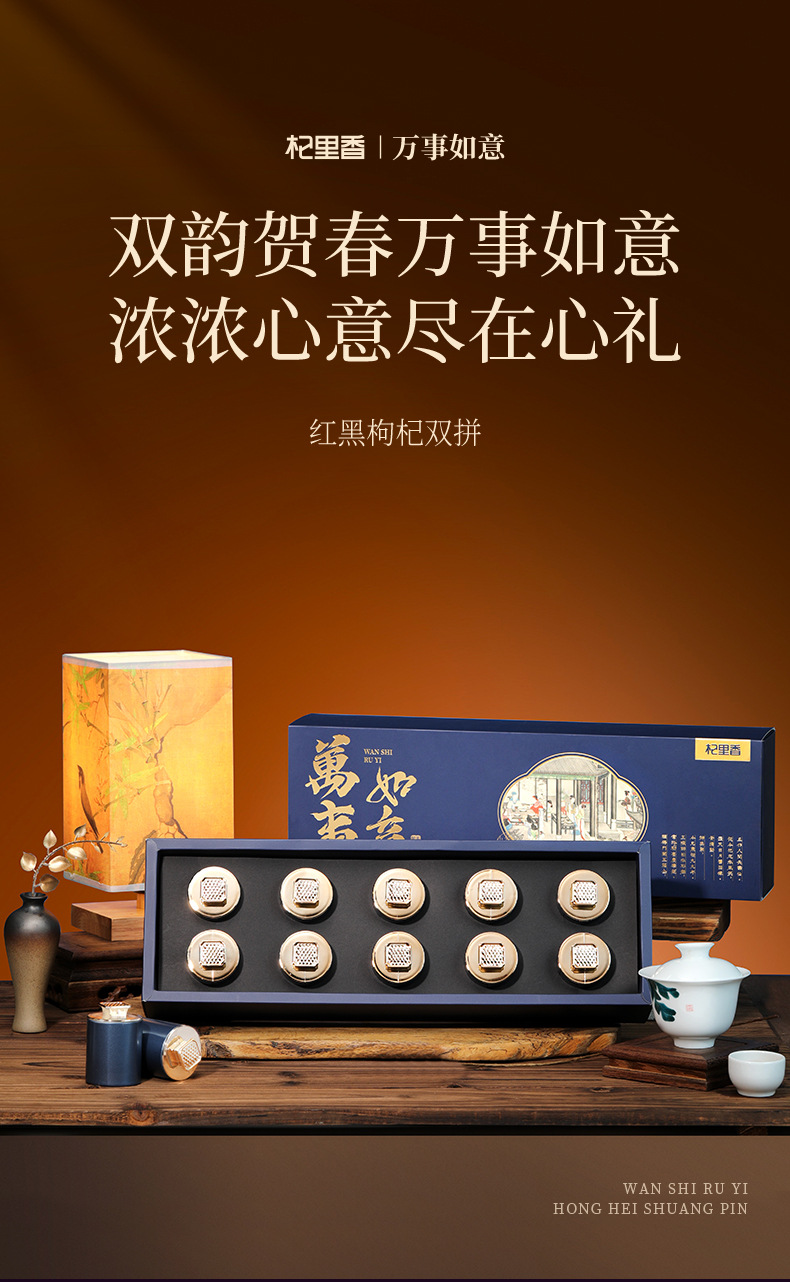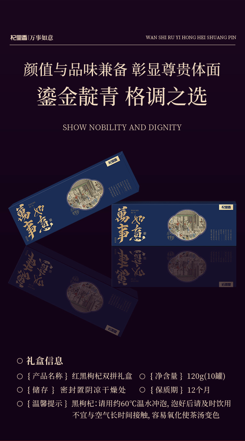 杞里香万事如意蓝红黑枸杞双拼礼盒120g青海黑枸杞宁夏红枸杞礼盒