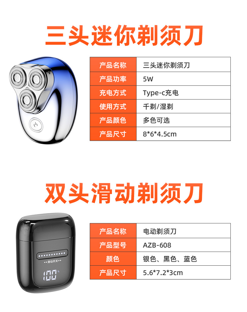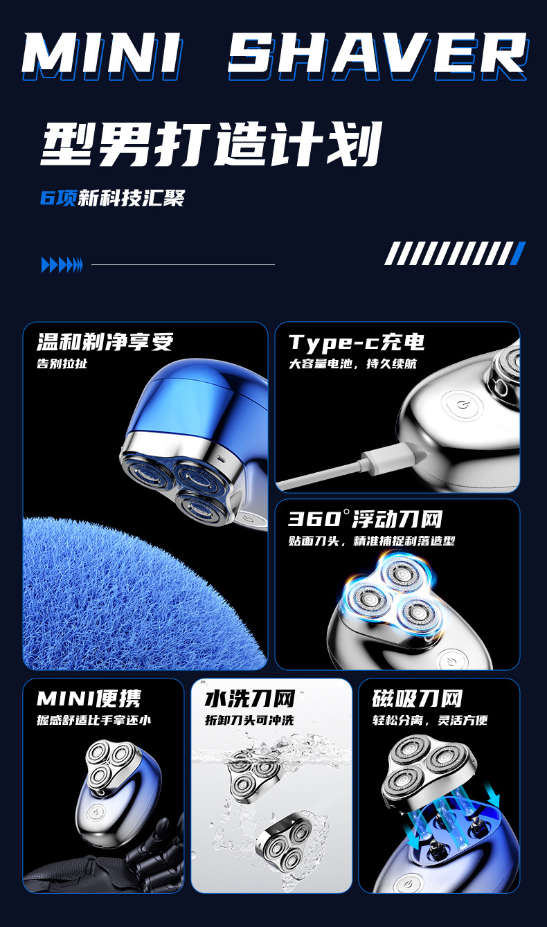 新款充电式电动可水洗剃须刀车旅男士各种场景迷你旅行便携刮胡刀