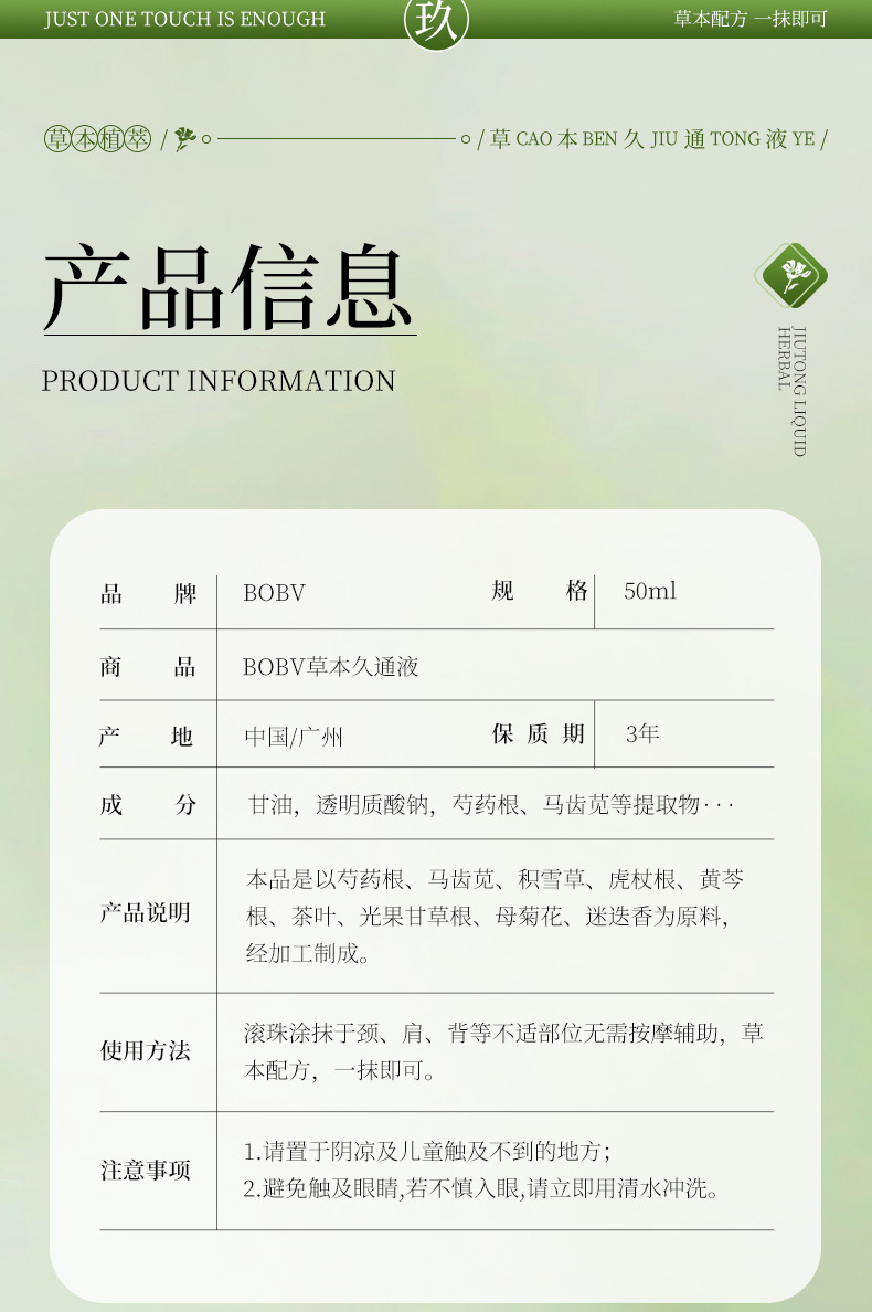 BOBV ハーブ Jiu Tong 液体ローラー肩、首、膝マッサージハーブスプレー外用経絡活性化卸売配送