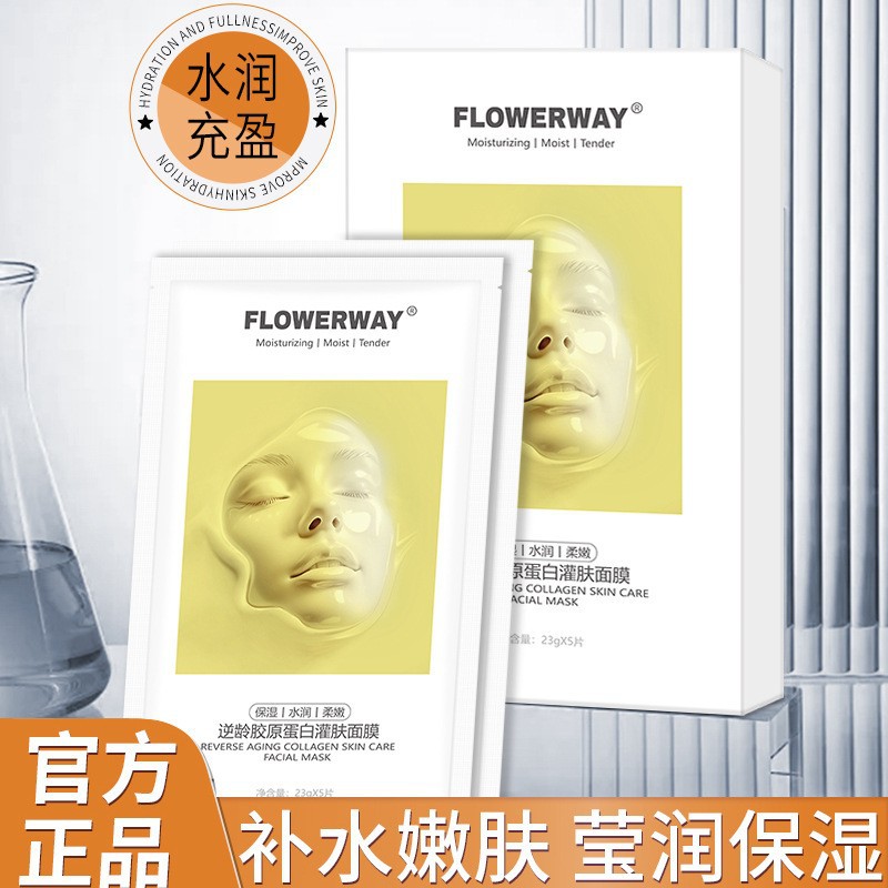 FLOWERWAY逆齢コラーゲン灌肌マスク抗シワ増亮補水コンパクト巨大滋養保湿マスク
