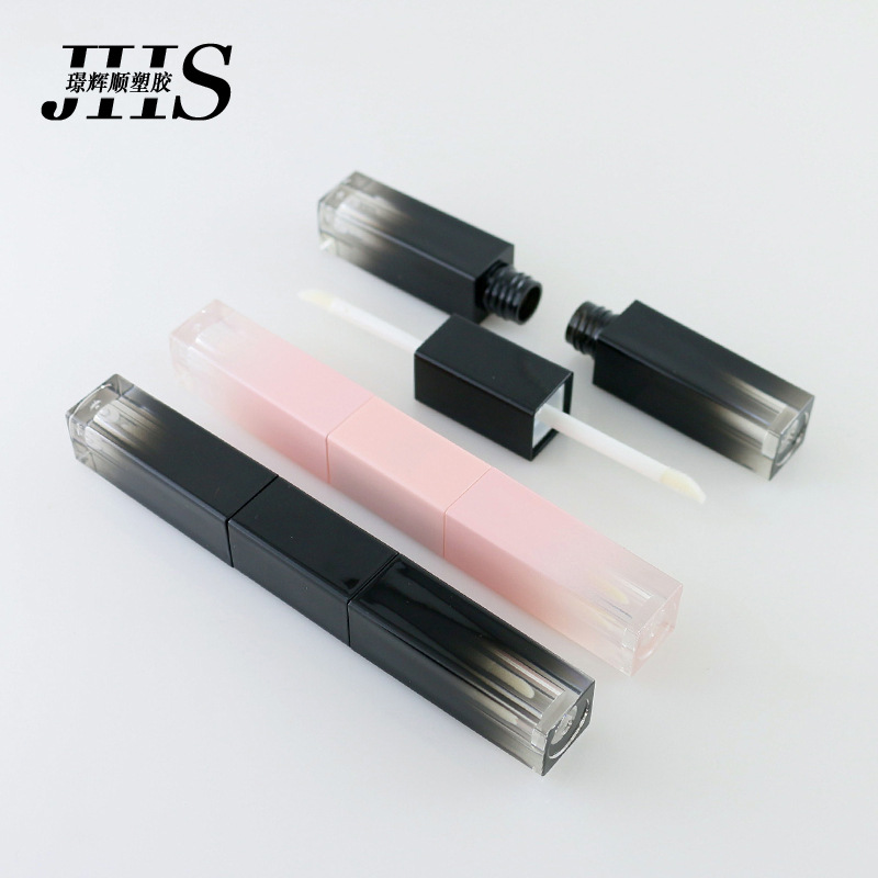 グラデーション黒ピンク角型ダブルヘッド唇カラーチューブ3ml卸売り唇釉薬チューブ口紅チューブ唇色空管メーキャップ包装材
