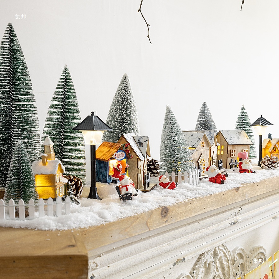 クリスマス発光キャビンオーナメントクリスマスツリーマイクロランドスケープタウン暖炉装飾シーンレイアウト