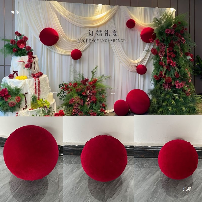 ホリデーデコレーション小道具ゴールドベルベットレッドフォームボールクリスマス装飾結婚式婚約宴会レイアウト背景雰囲気